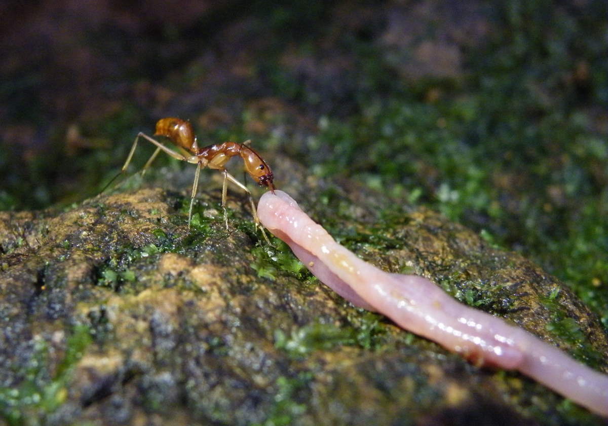 Eine Odontomachus-Arbeiterin mit ihrer Beute
