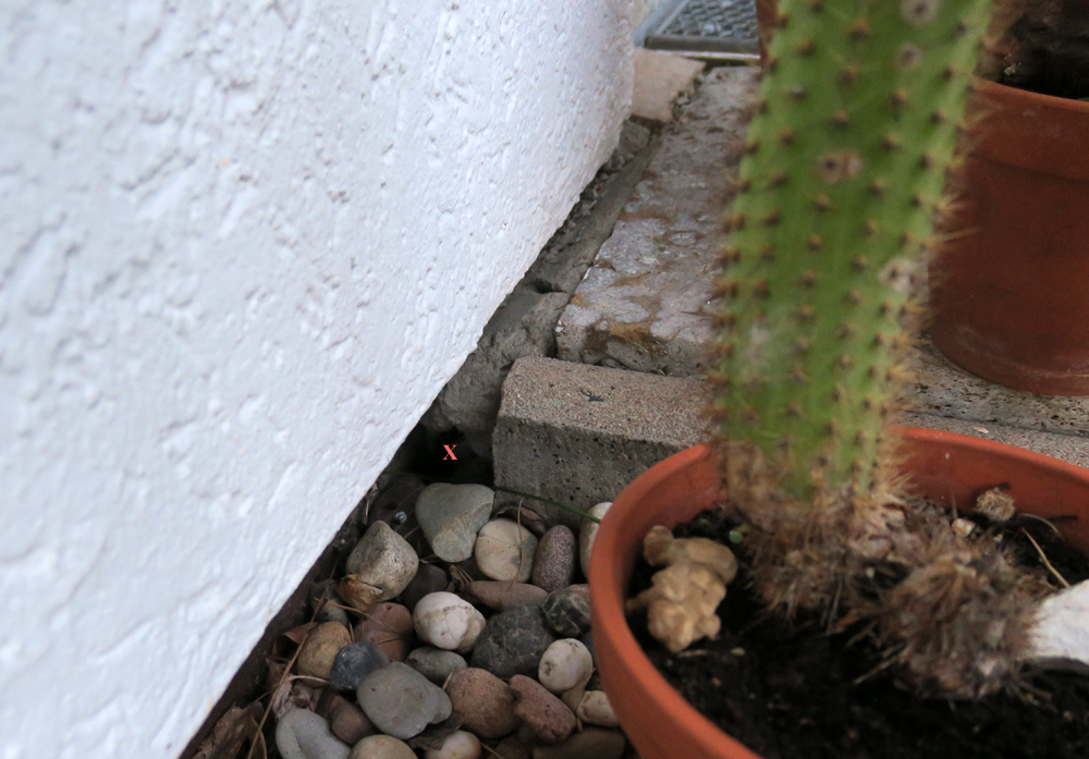 Das Loch an der Hauswand unter die Terrasse war mir schon aufgefallen. Am Tag dort eingesteckte Gänseblümchen waren am Abend weg geräumt.