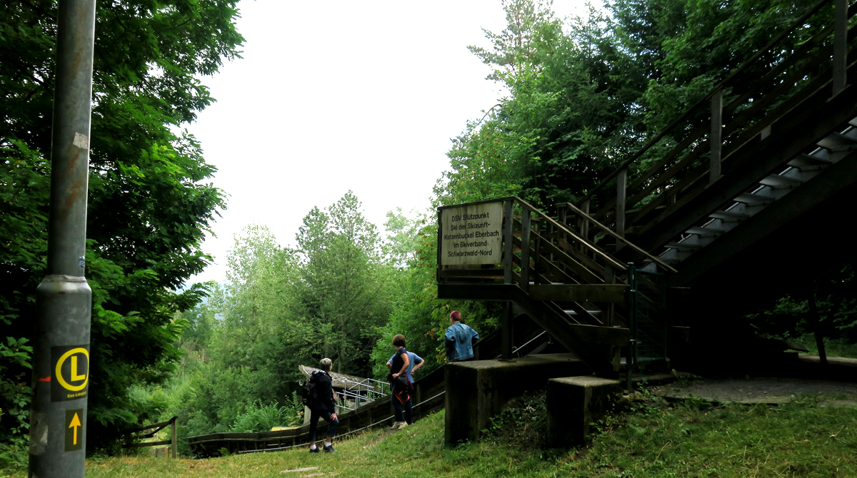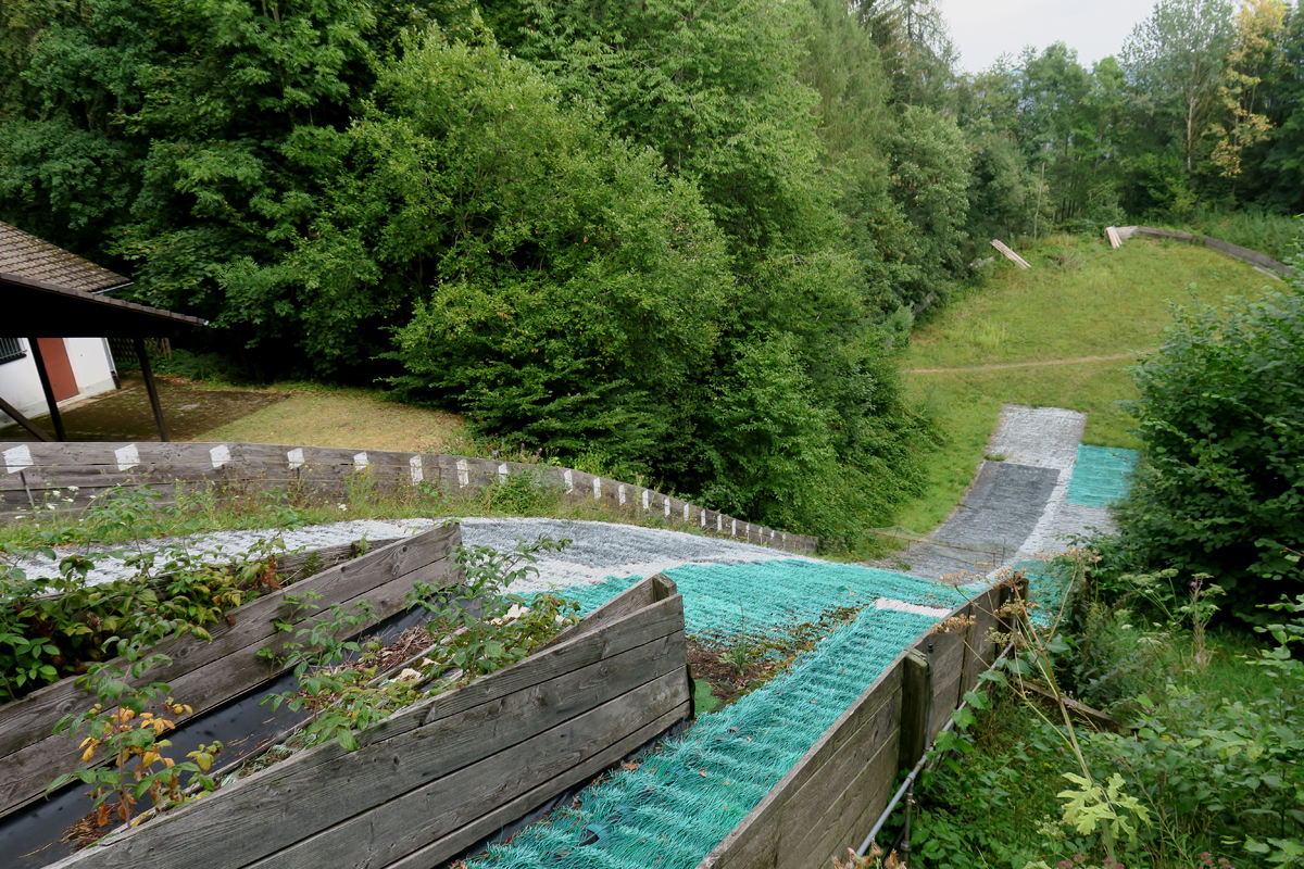 Kleine Skisprungschanze, hilfsweise mit Kunststoff-Belag.