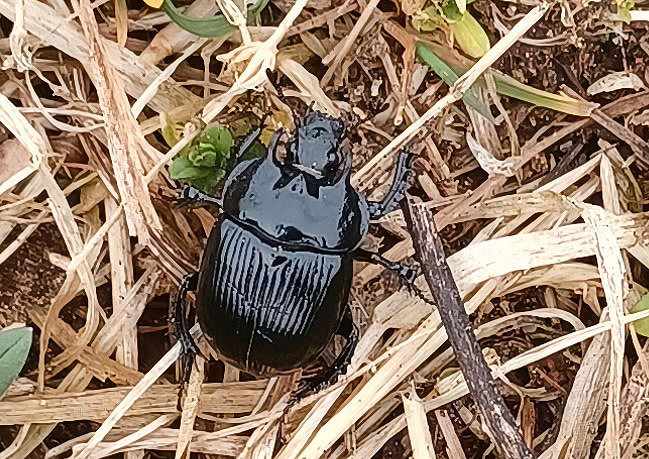 Neben dem Nest krabbelte ein "Mistkäfer": Bei näherem Hinsehen war es ein Stierkäfer, Typhaeus typhoeus!