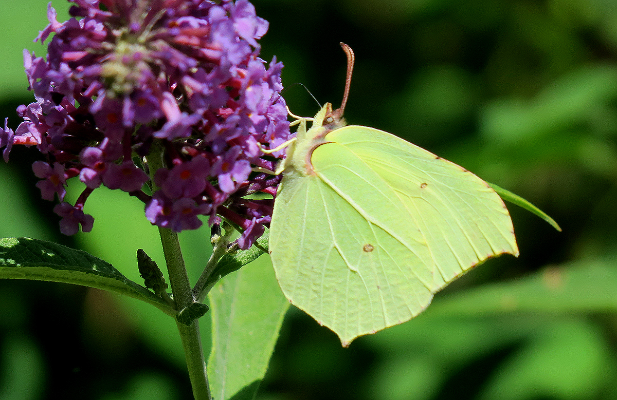 Neben Kohlweißlingen und einem Blutströpfchen (Fam. Zygaenidae) sowie Heufaltern auffallend waren mehrere Zitronenfalter: