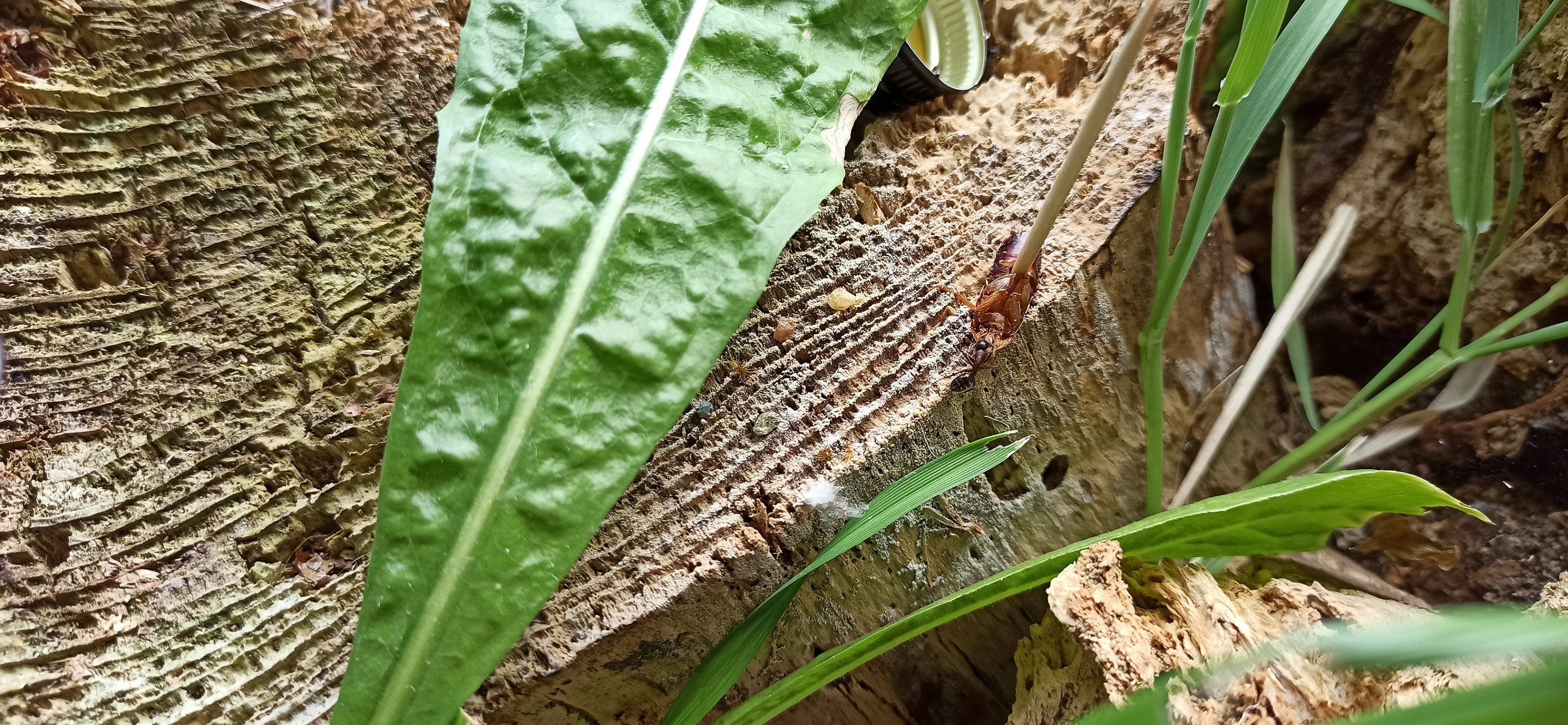 Wie ich es eingerichtet habe: Ich habe mir einen Mischwald am Rande der Stadt angeschaut, der zwar forstwirtschaftlich und als Naherholungsgebiet genutzt wird, jedoch eine ausgeprägte Streuschicht und einen ordentlichen Anteil an Totholz aufweist. Der Wald hat Nadel- sowie Laubbaumabschnitte. Je nach Zeitpunkt der Anpflanzung ist der Wald teils sehr schattig und dicht, teils aber auch sehr licht. In einem solchen lichten Abschnitt konnte ich Camponotus cf. ligniperda beobachten. Für die Einrichtung des Formicariums habe ich Material aus dem Wald verwendet. Die anwesenden Forstarbeiter waren damit einverstanden, dass ich zwei verrottende Holzteile mitnehme. Davon gibt es in dem Wald reichlich.