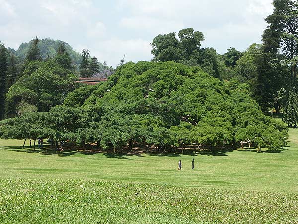 Das Bild zeigt einen etwa 200 Jahre alten Ficussp. im Botanischen Garten von Kandy, Sri Lanka. Mit rund 400 m Umfang bietet der Baum viel Platz für die artgerechte Lebensweise der Weberameisen. Es sind weitere Bilder und Infos dort zu finden. (Die Links in dem AWiki-Artikel sind jedoch leider weitgehend tot).