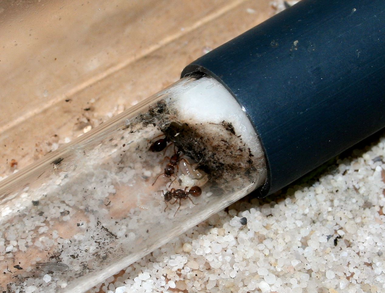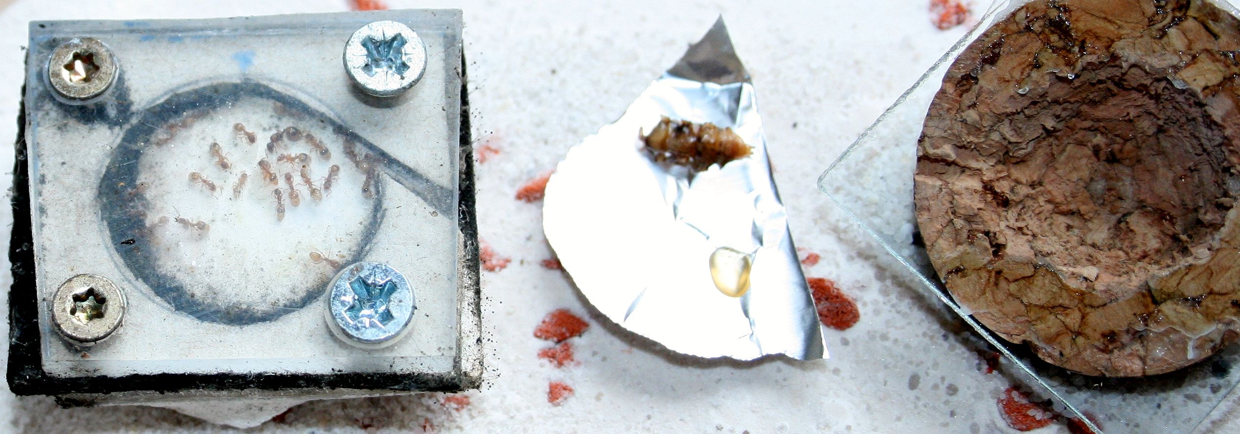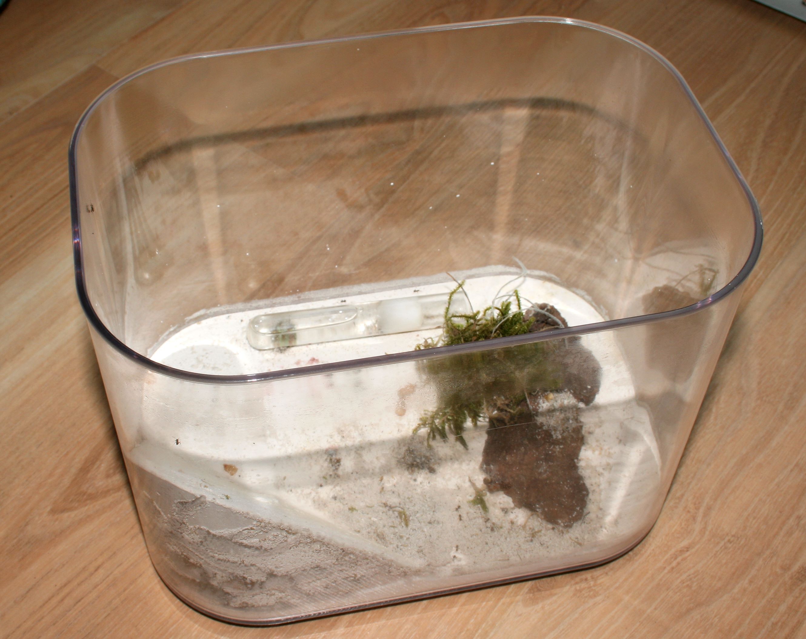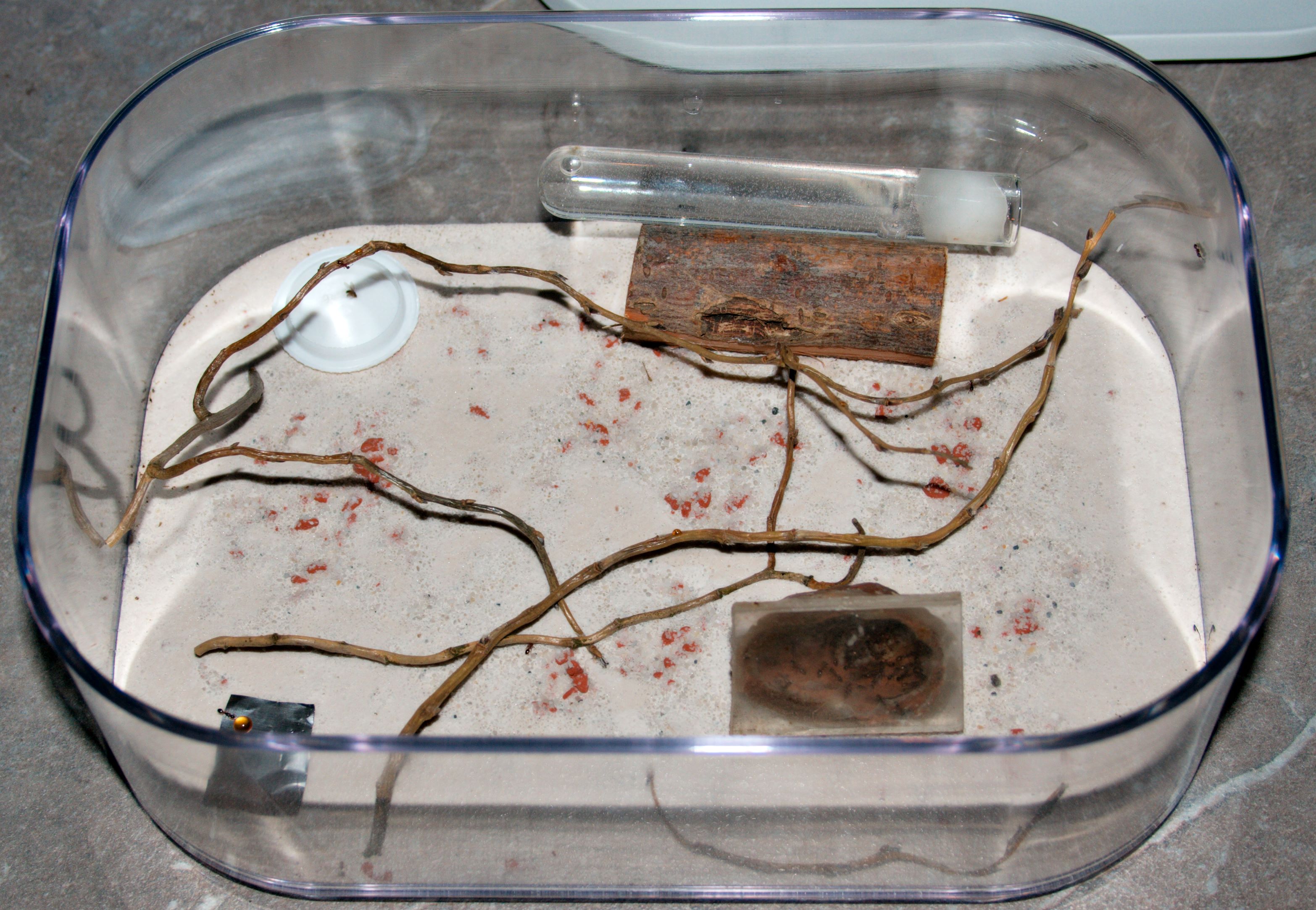Begonnen hab ich mal mit den Leptothorax, da ich dafür noch eine größere zuhause hatte. Ausserdem wird anschließen ihre für die Temnothorax vorbereitet.