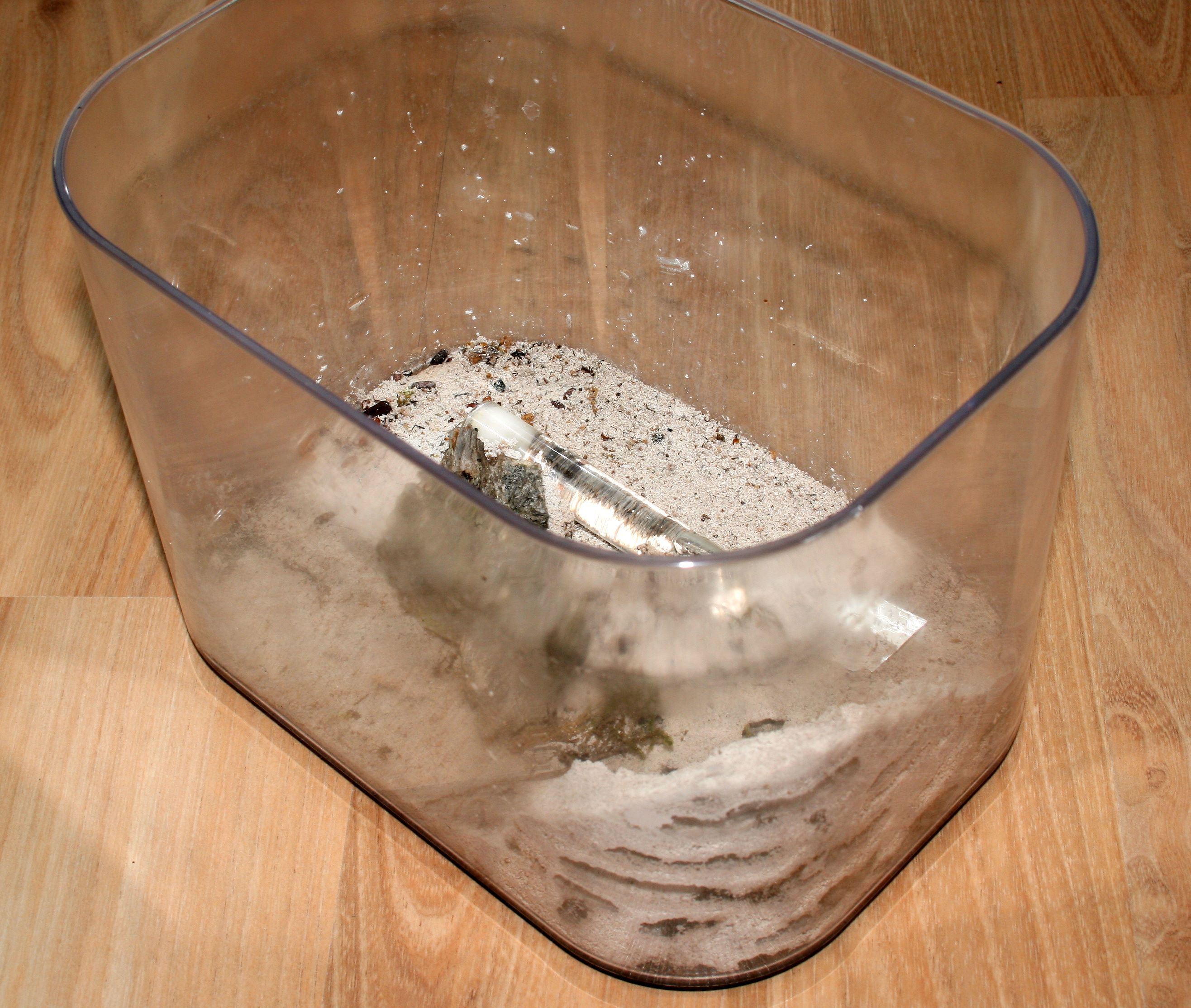 Es geht inzwischen weiter mit den Umzügen. Die alte Box der Leptothorax wurde gereinigt und für die Temnos hergerichtet und in die alte der Tc1 sind die T unifasciatus gezogen. Weil ich grad dabei war, hab ich dann noch die Arena der M rubra 1 gereinigt wo mir dann gleich der Gipsboden entgegengefallen ist, so hab ich da auch gleich einen neuen reingezaubert. Geht ja flott sowas.