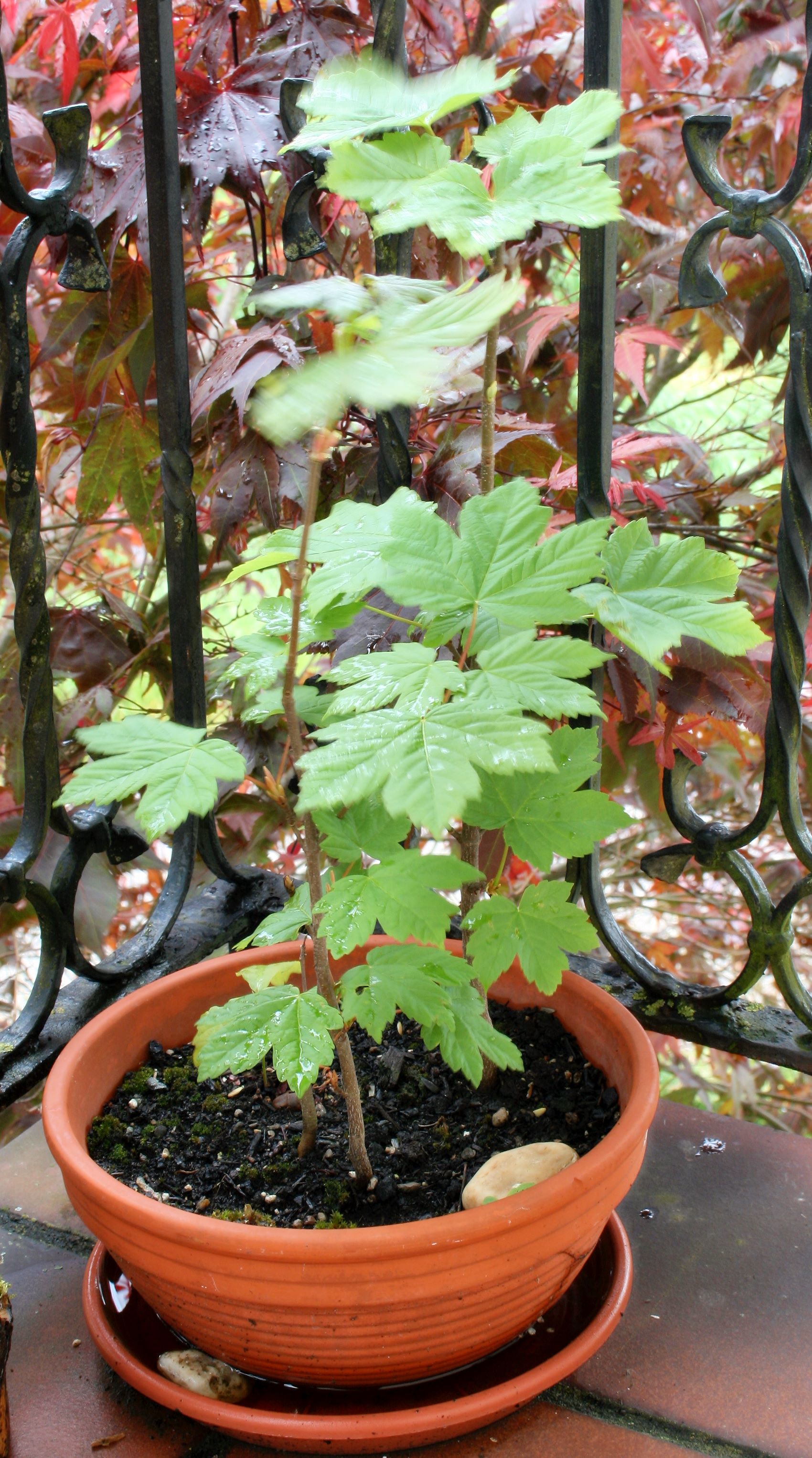 Die zweite davon. Dieser habe ich aber dann die übrigen Arbeiter der gefressenen Gynen untergejubelt, damit sie draussen einen besseren Start hat. Die lebt nämlich jetzt im Blumentopf, also bei den Bonsaiahorns und betreibt allem Anschein auch schon Viehhaltung und dass trotz des Sauwetters.