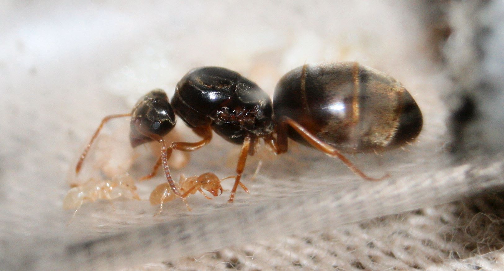 Bin mir allerdings nicht ganz sicher, ob es nicht T unifasciatus ist. Manchmal könnte man das schon meinen, wenn man die Bilder sieht. Im Nest ist leider der Plexiglasdeckel etwas trüb. Ansonsren würde es dazu passen.
