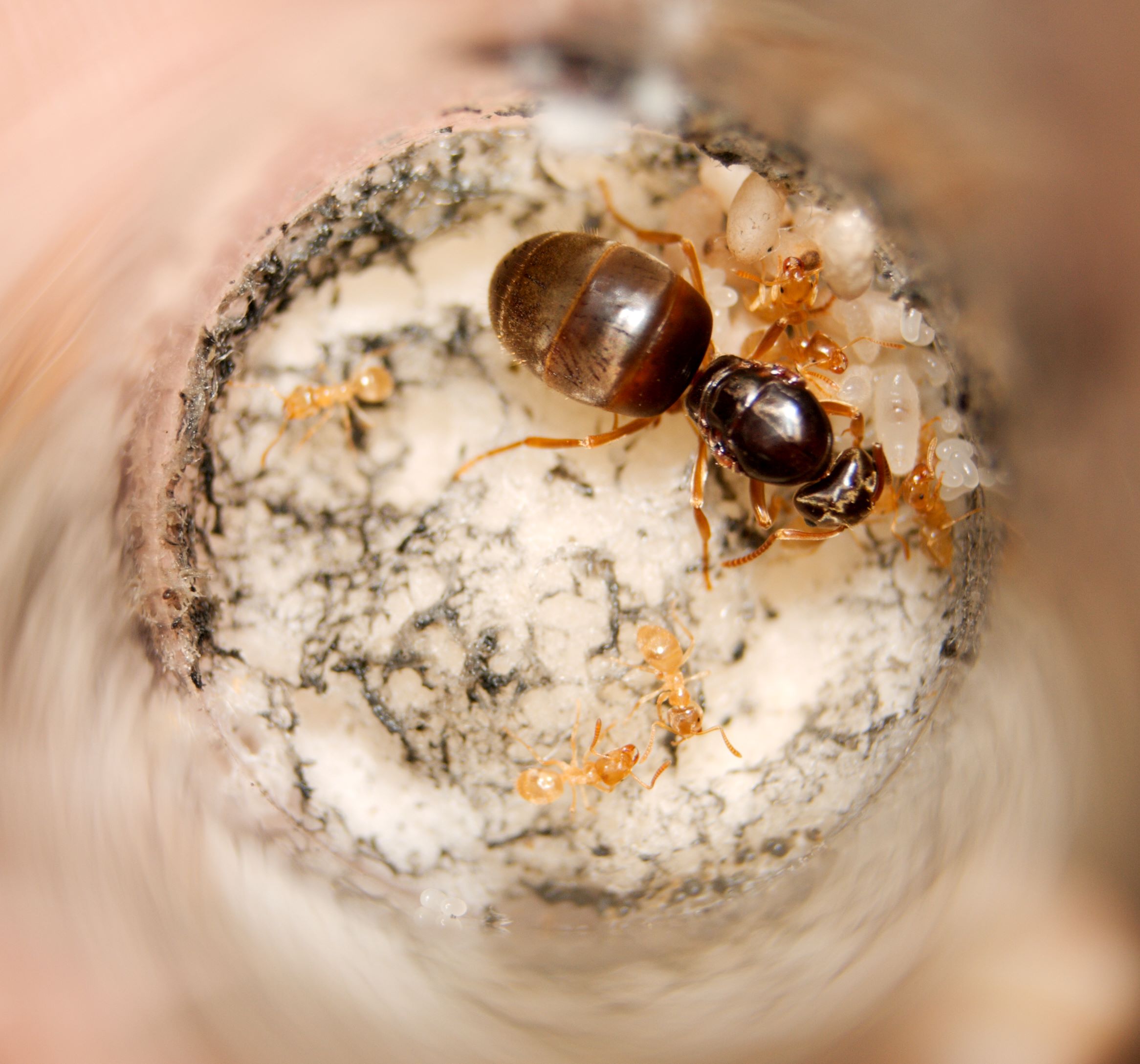 Ein kleines Update zu meiner ältesten Kolonie hier, die Myrmica rubra mit dem externen Gipsnest, (Mr1)