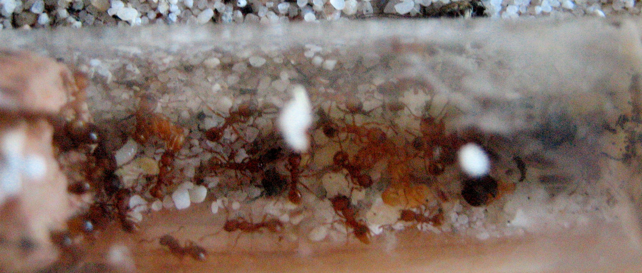 Die drei Myrmica rubra Gynen scheinen nun wohl auch ihren Rhythmus gefunden zu haben, denn nun sieht es dort auch aus, als ginge es mal richtig voran.