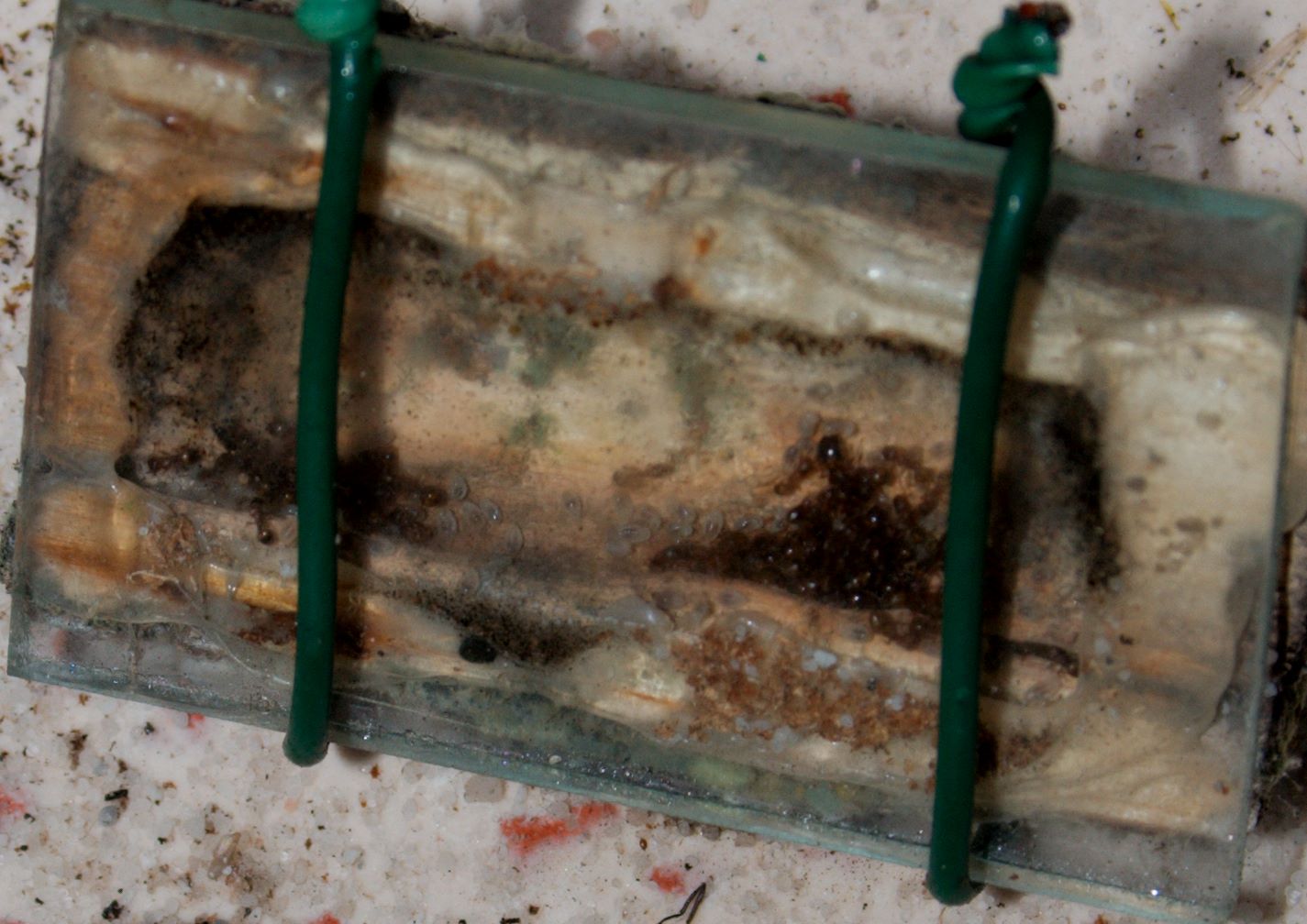 die Myrmica rubra bewohnen inzwischen das RG in dem Bereich, in dem normalerweise das Wasser ist.