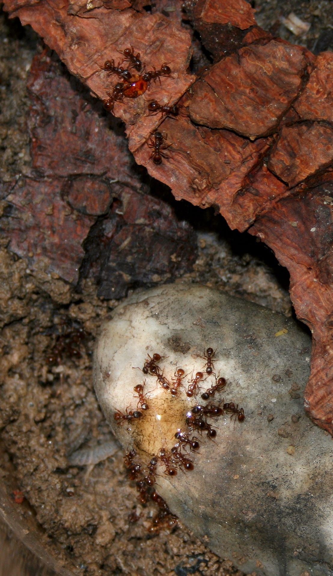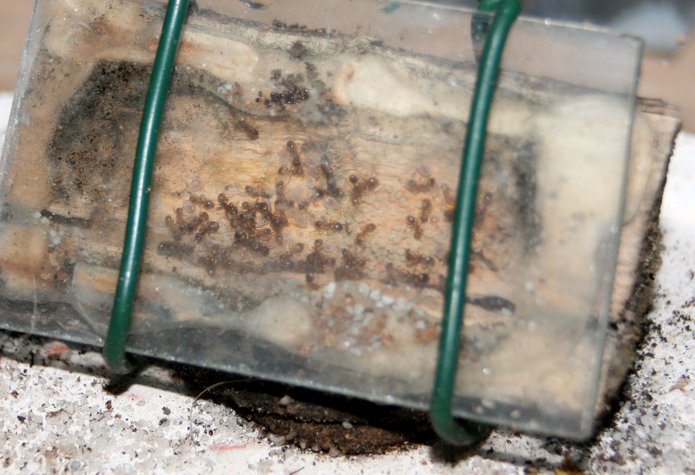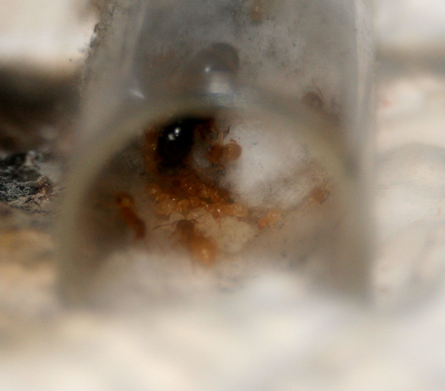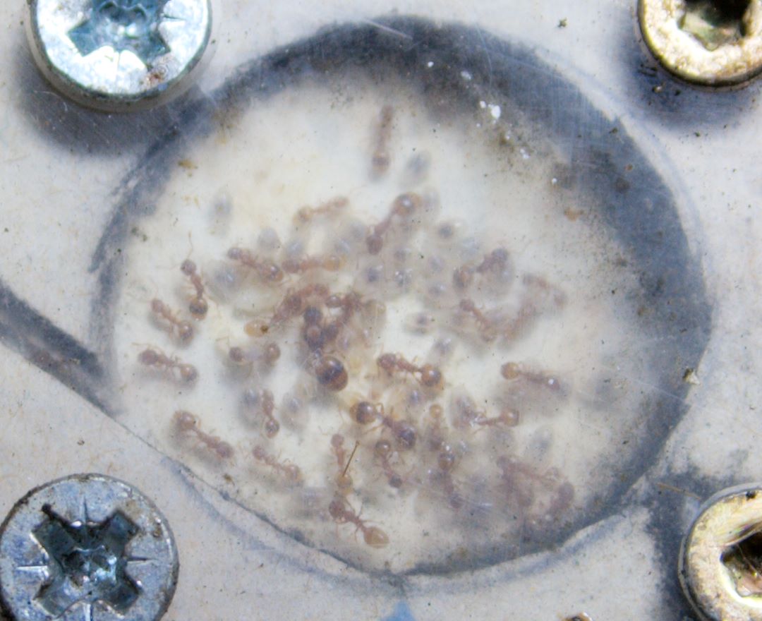 Es ist immer wieder erstaunlich, was die Minimalisten wie Temnothorax so auf die Reihe bringen. Bis dato ca Fliegen und sieben stecknadelgroße Tröpfchen Sirup verfüttert und die kleinen füllen damit ihre Nester mit Geschlechtstierlarven an.