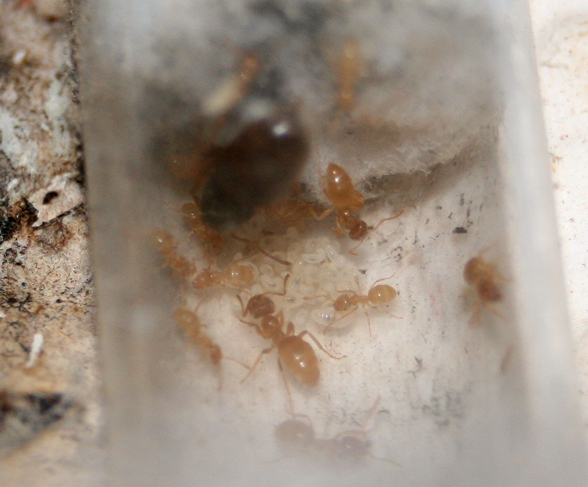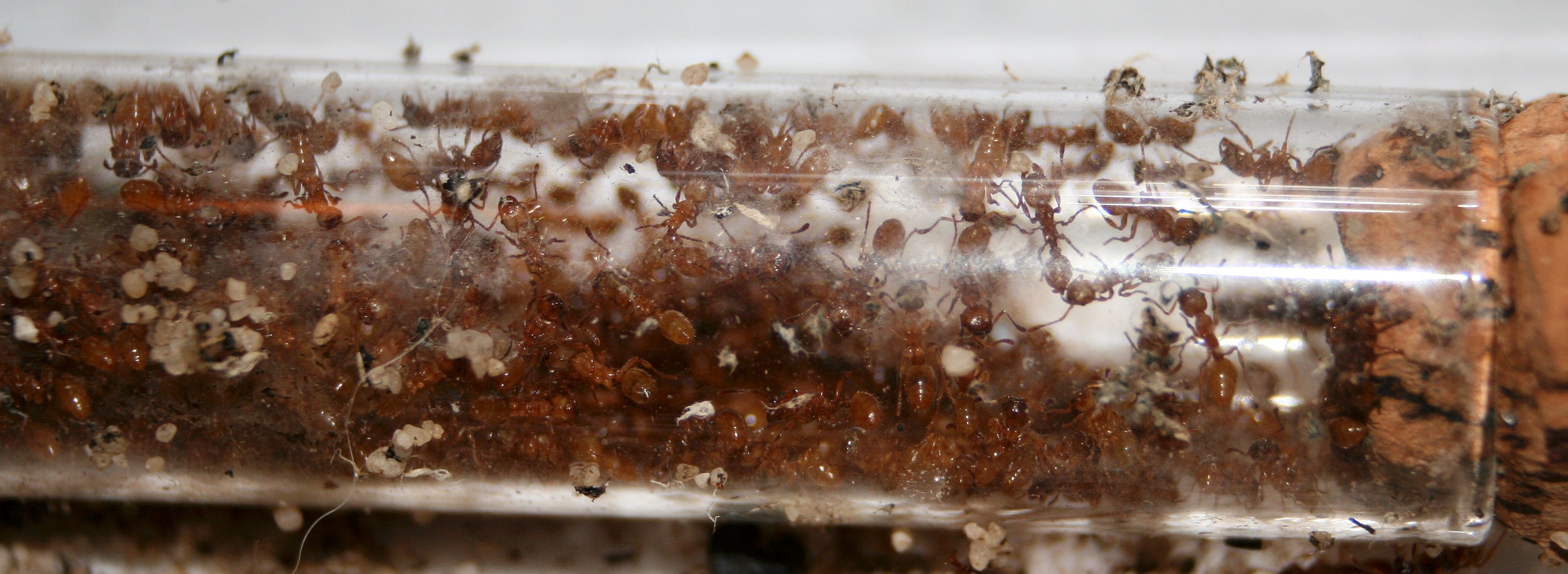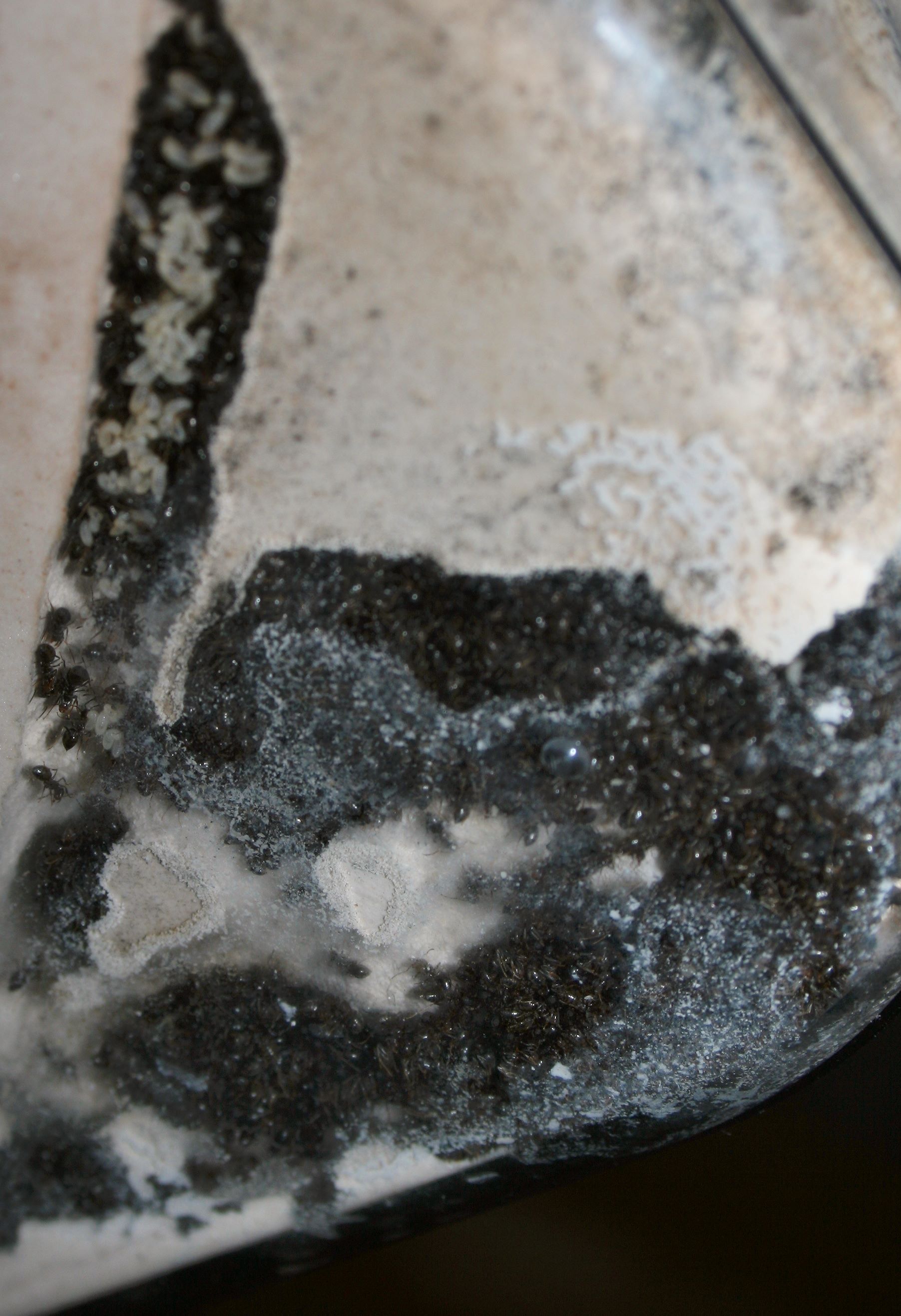 Es ist immer wieder erstaunlich, was die Minimalisten wie Temnothorax so auf die Reihe bringen. Bis dato ca Fliegen und sieben stecknadelgroße Tröpfchen Sirup verfüttert und die kleinen füllen damit ihre Nester mit Geschlechtstierlarven an.