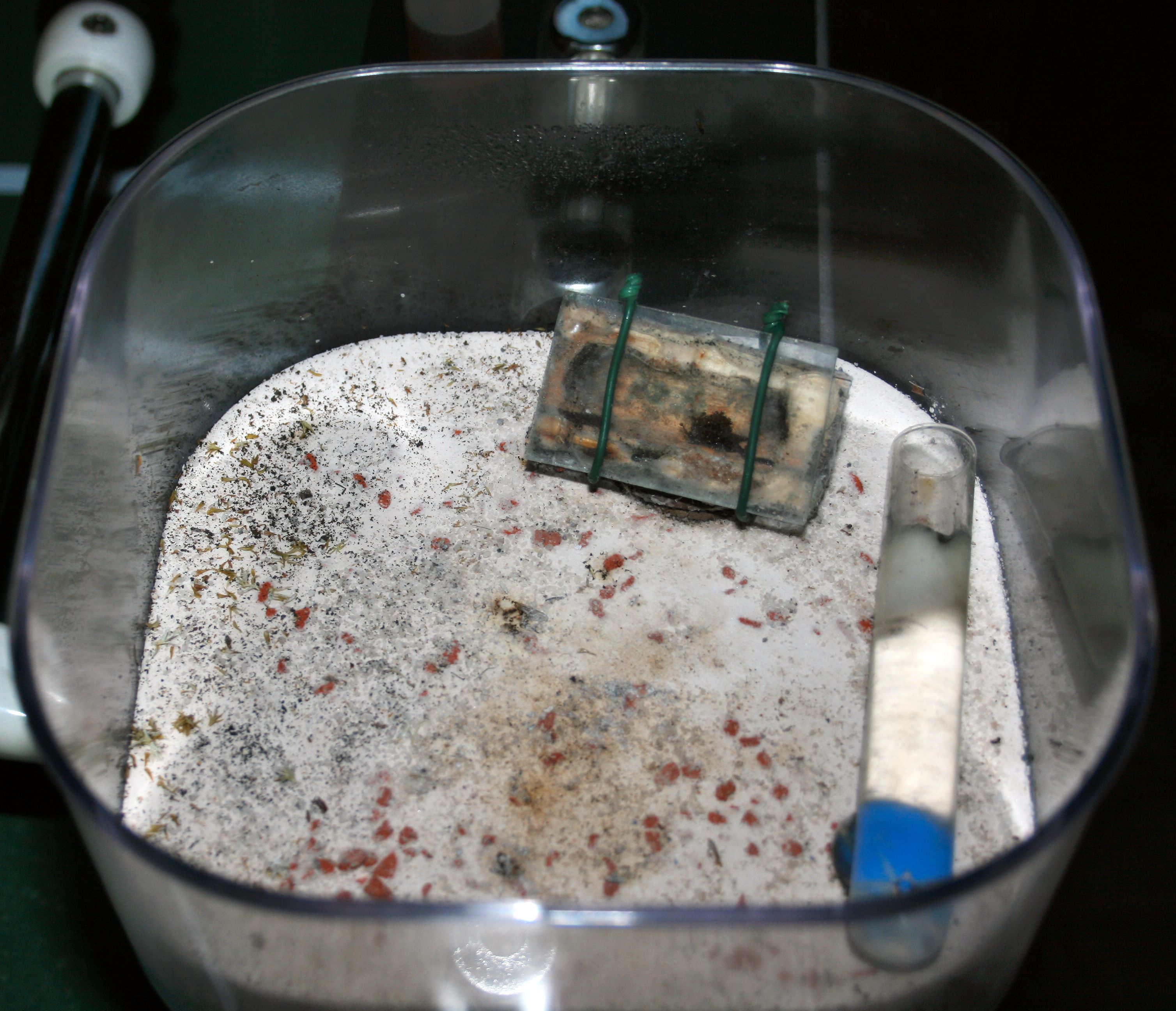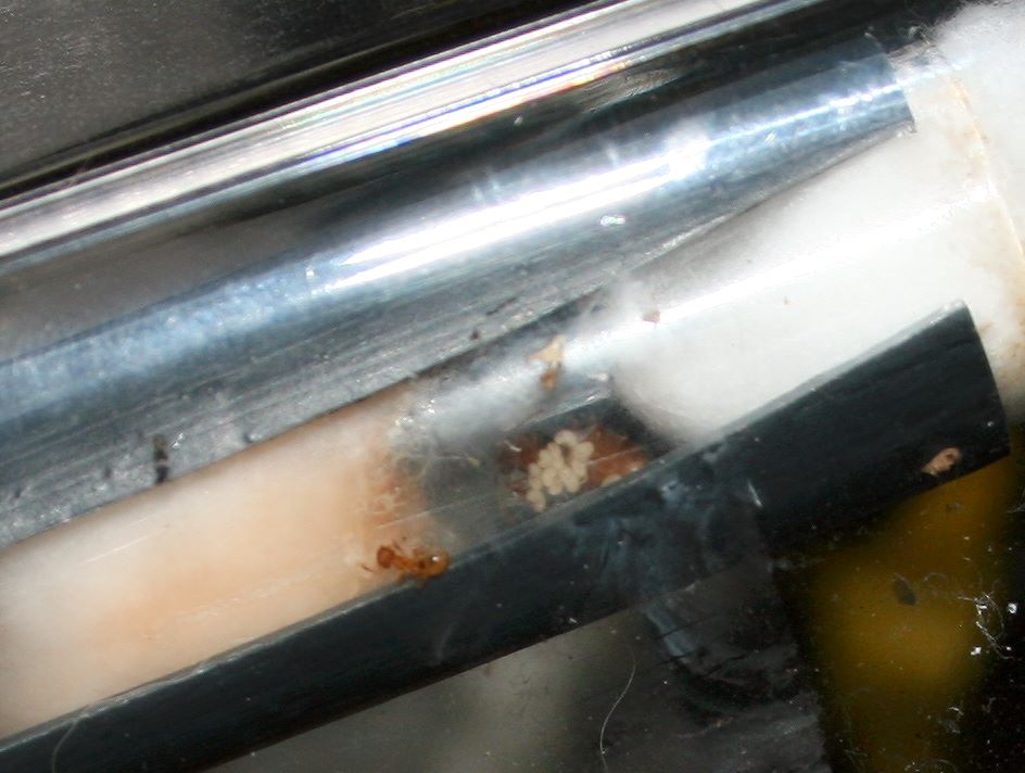 Einmal ist es die Leptothorax acervorum Kolonie, die nun wohl endgültig "ausgestorben" ist. Wie ich bereits letztes Jahr beobachten konnte, wurden es irgendwie immer weniger und zuletzt wurden auch keine Geschlechtstiere mehr gebildet. Ich denke, es wird wohl ein "natürlicher Tod" gewesen sein, also das Alter der Gyne. Immerhin war das ja ein eingesammeltes Volk.