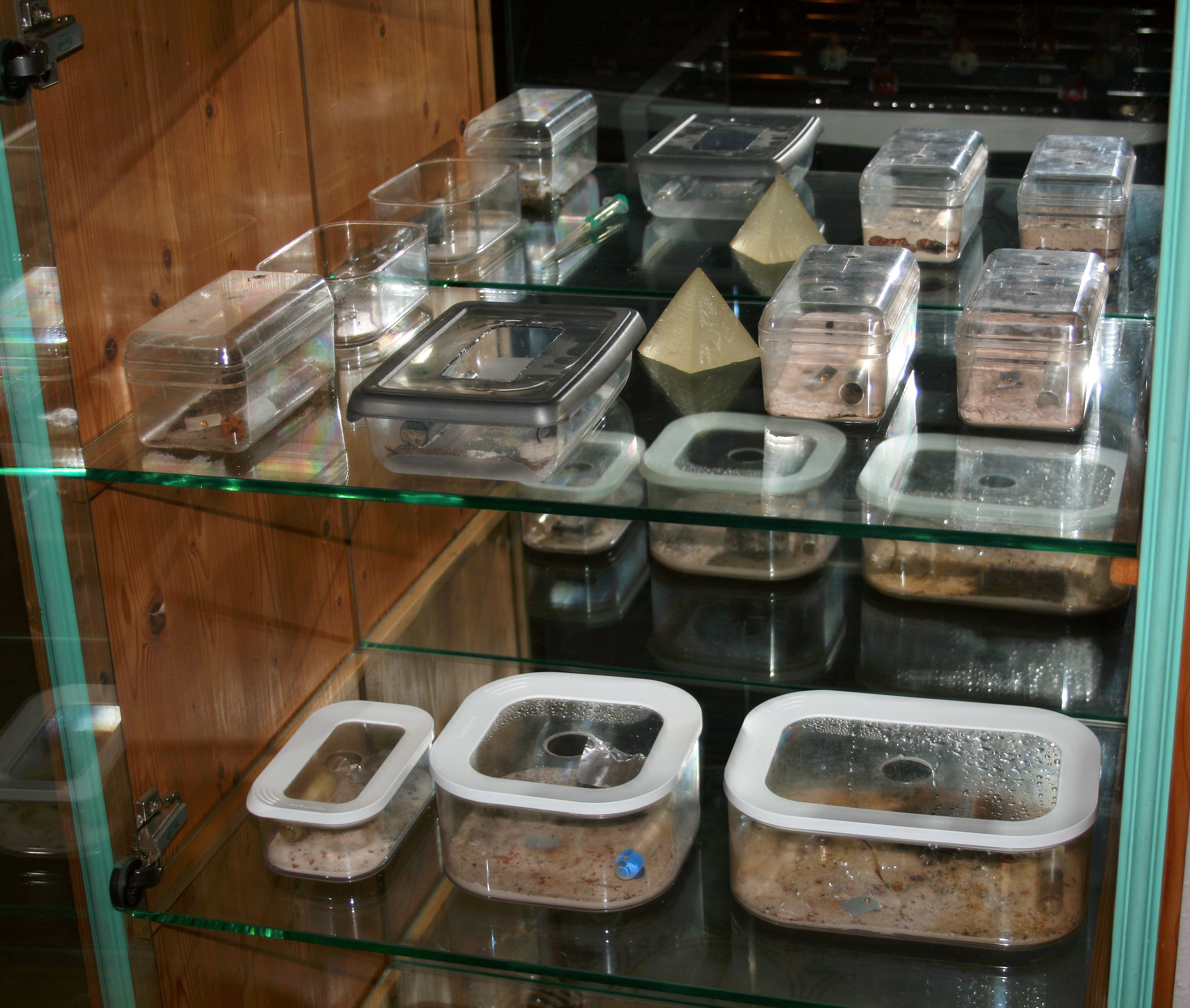 Die kleinen Gipsnester der Lasius niger und flavus hab ich noch gut befeuchtet, die funktionieren bisher ganz gut und durch die relativ kleinen Löcher in den Deckeln entweicht auch nicht viel, so haben sie doch über längere Zeit auch eine in etwa gleichbleibende Feuchtigkeit. Bisher sieht es ganz gut aus.