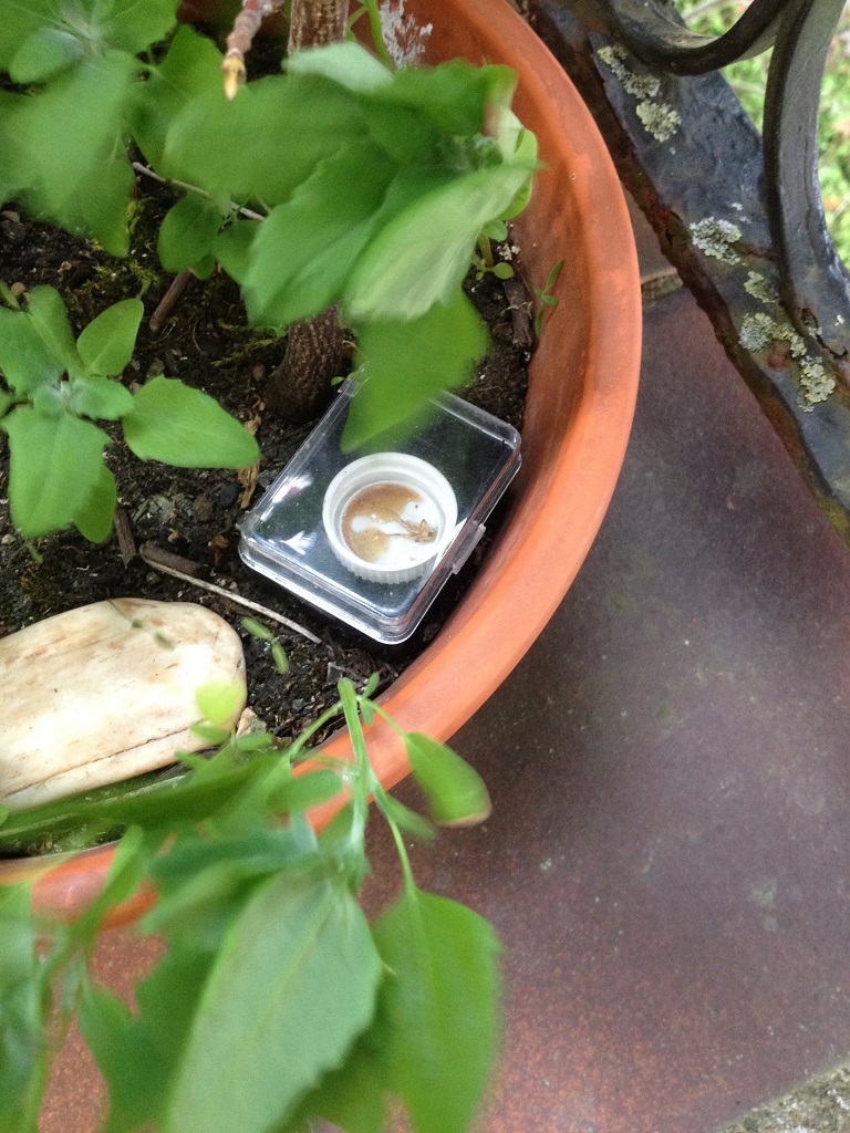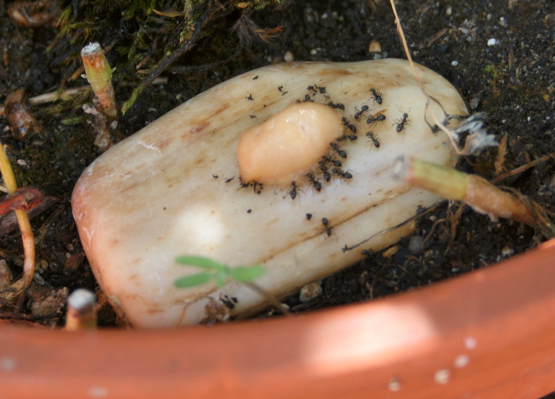 Die beiden Völker im Blumentopf, der die ganze Zeit über im Zimmer stand, lassen sich inzwischen auhc mit Futter hervorlocken, zumindest die Lasius.