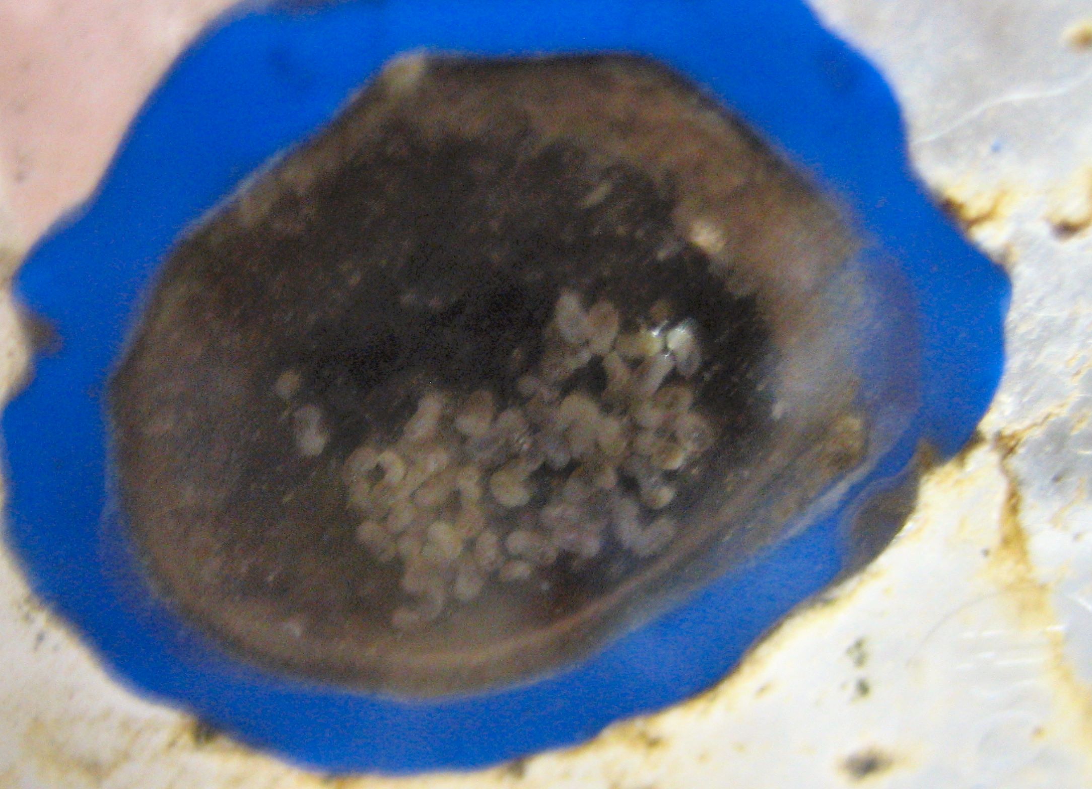Temnothorax cf crassisipinus, zwei unterschiedlich große Völker aus je einer Eichel. Das kleine lebt in einem OT-Nest, das größere je nach Bedarf in zwei oder drei halben Haselnüssen (wenn sie Geschlechtstiere aufziehen, brauchen sie immer den ganzen Platz