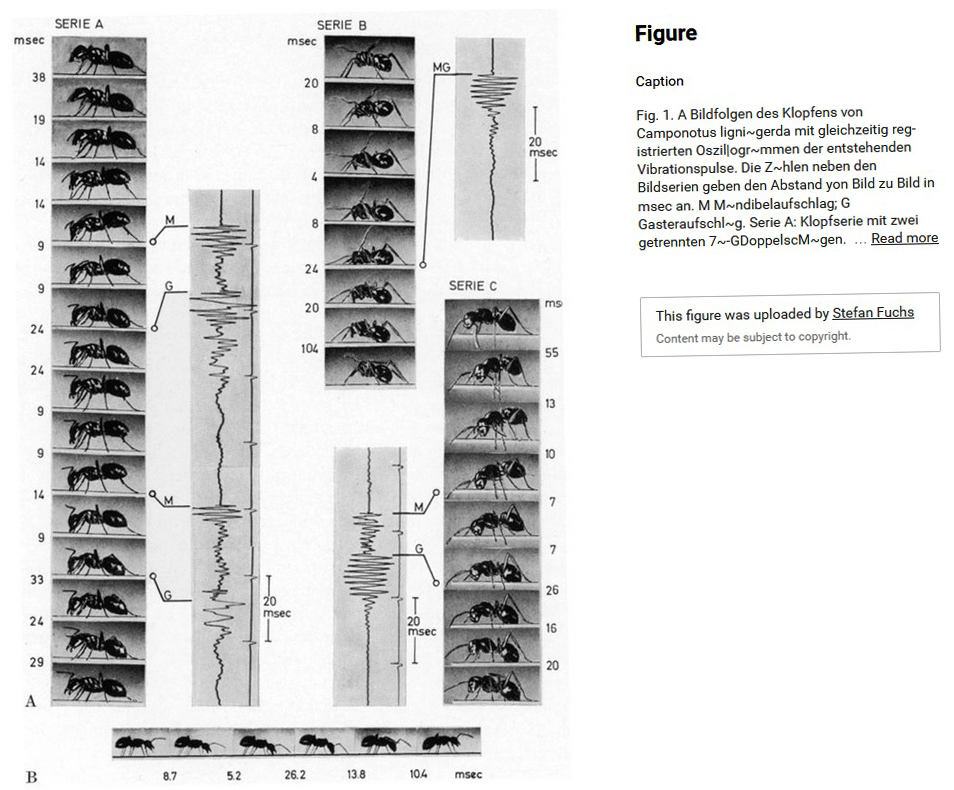 Hubert Markl und Stefan Fuchs (1972): Klopfsignale mit Alarmfunktion bei Rossameisen (Camponotus, Formicidae, Hymenoptera). Journal of Comparative Physiology A: Neuroethology, Sensory, Neural, and Behavioral Physiology 76, 204-225.