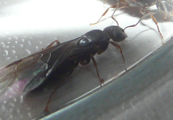 Auch die Größenangabe für die Königinnen stimmt, sie ist im Habitus graziler als etwa die Gynen v. Lasius niger. Das Mesosoma ist flach gebaut, die Gaster ist relativ schmal und länglich. Die langen Flügel deuten auf die Fähigkeit für weitere Ausbreitungsflüge hin.
