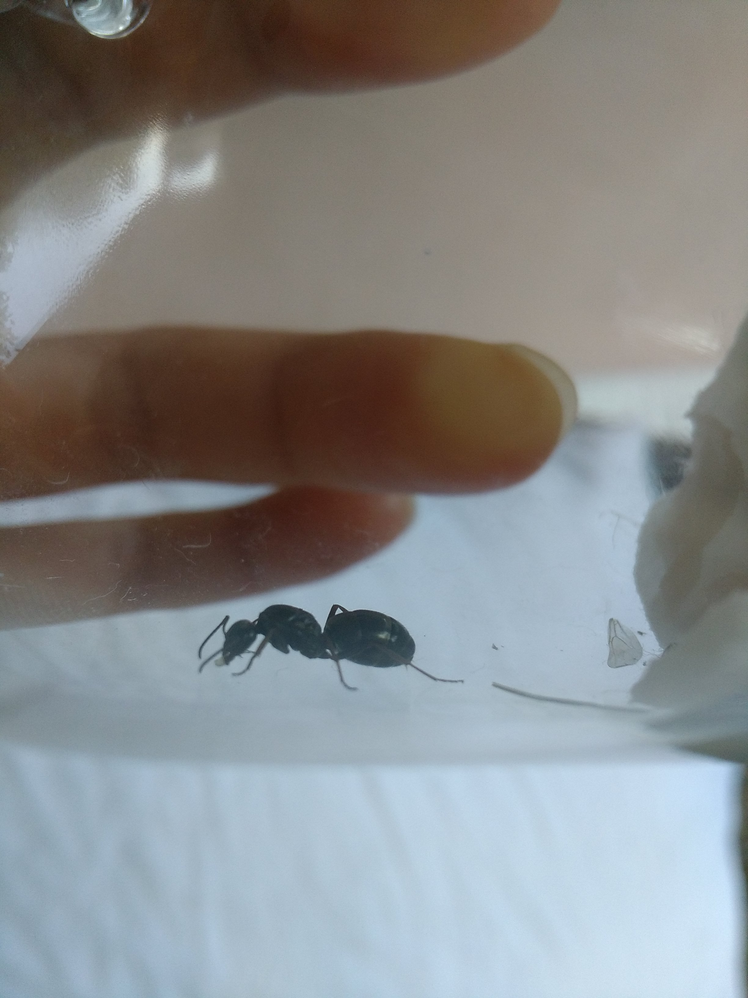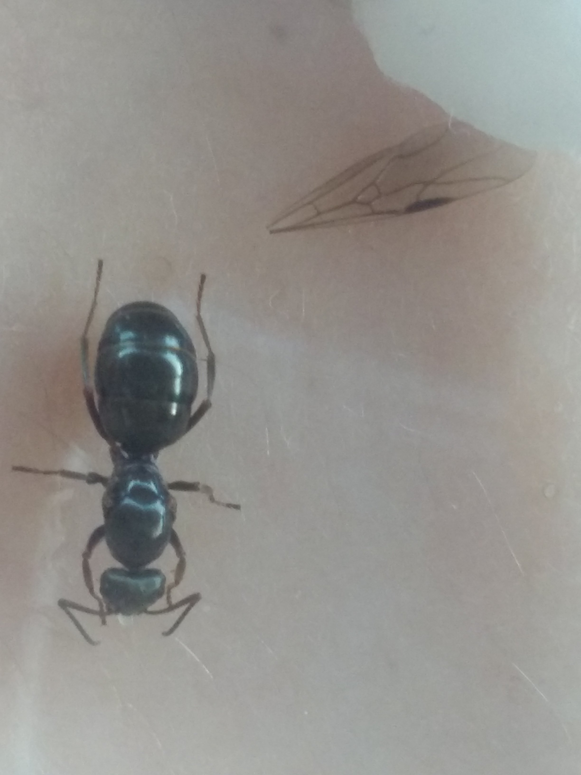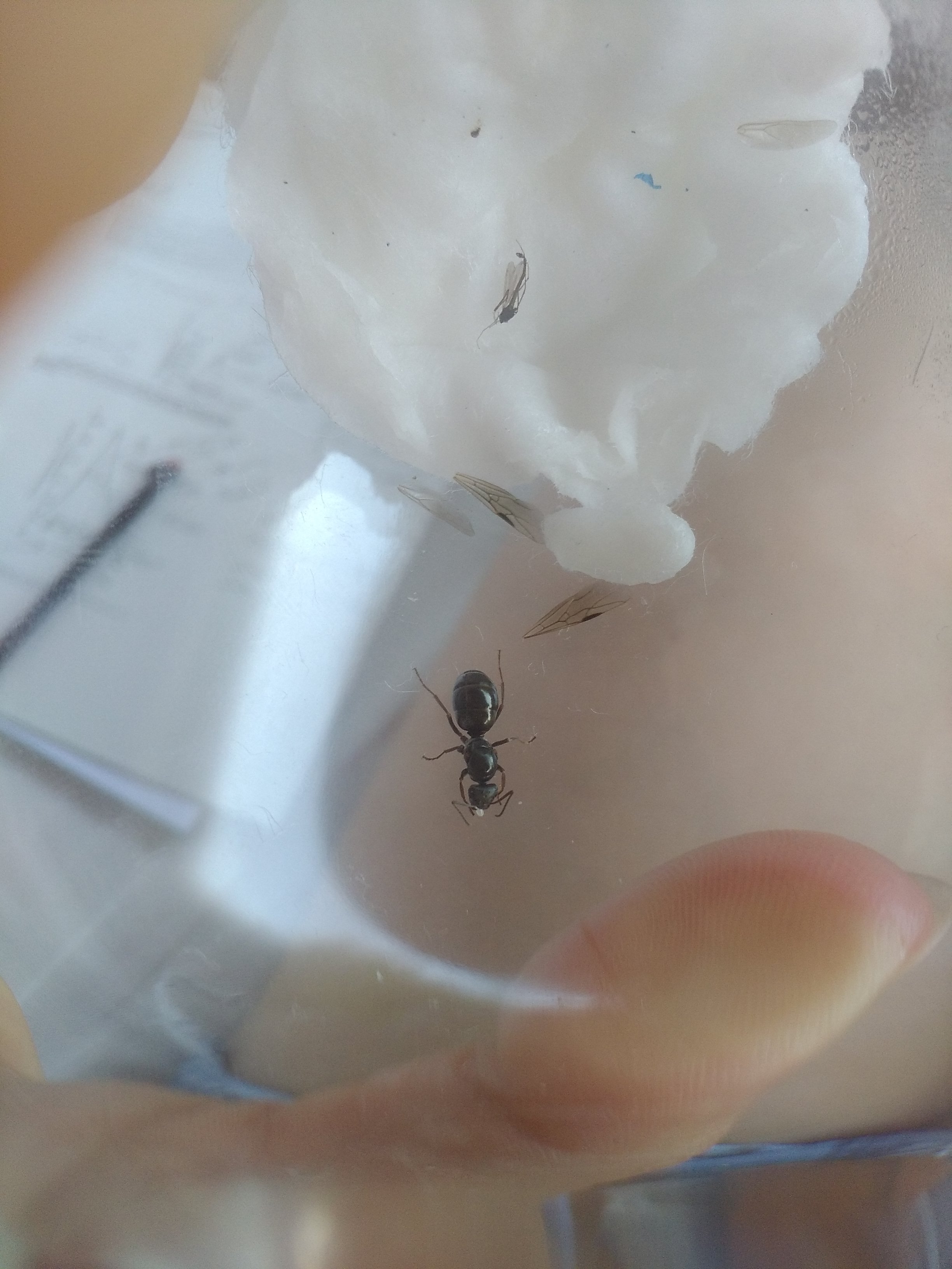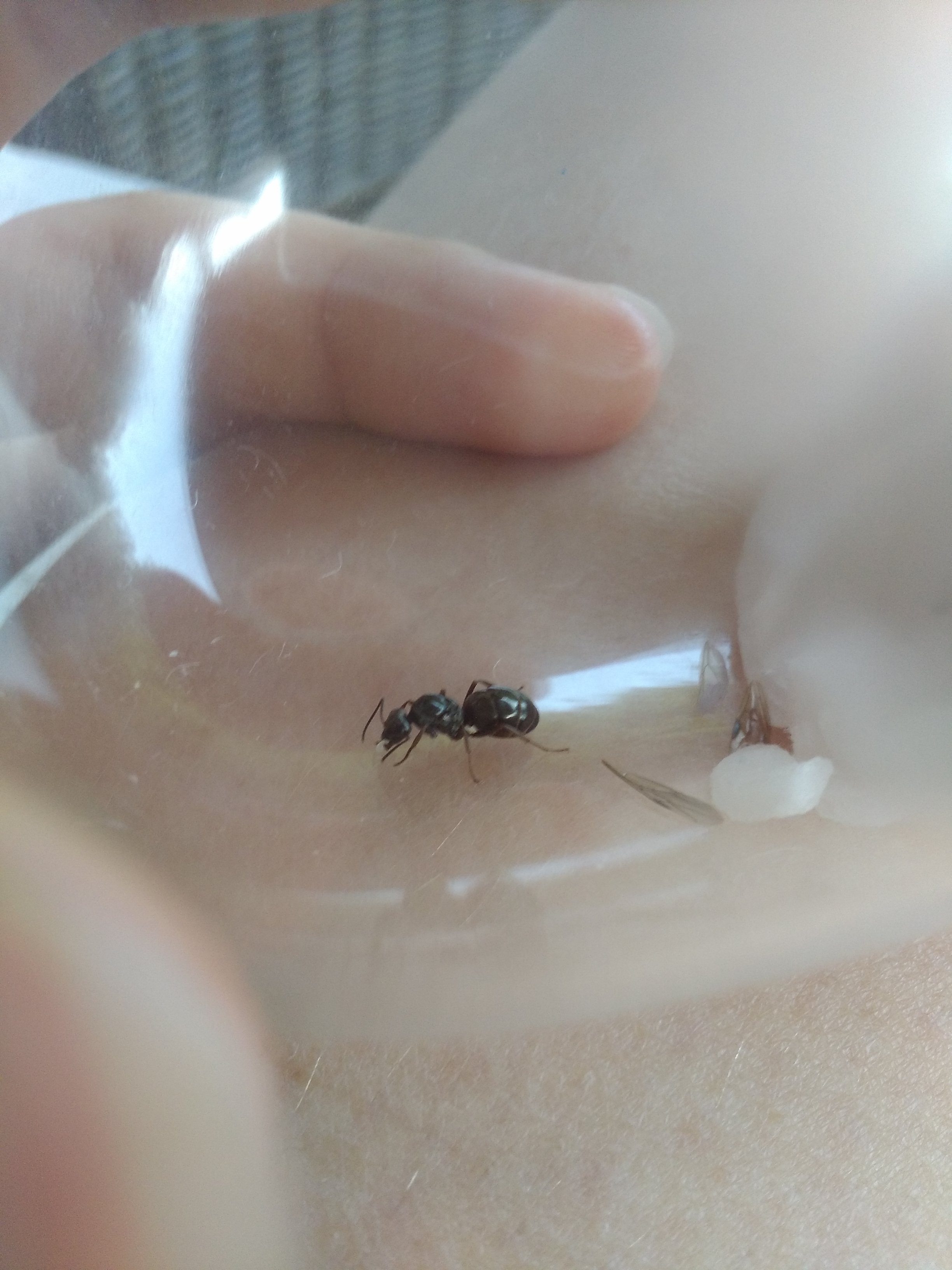 Guten Tag, soeben habe ich den wiki-Artikel über Formica fusca gelesen und denke es könnte so ziemlich zutreffen. Eine nacht bevor ich diese queen fing, habe ich 6 andere Königinnen gefangen, die ich darauf wieder freiließ um zu beobachten wo sie hinliefen. Nach 20 min. konnte ich beobachten wie zwei Königinnen in einem Loch verschwanden in einer etwas lehmigem Erdkruste. Als ich dann mit der Schaufel aufgrub, fand ich lauter rote Ameisen. das machte erst keinen Sinn, aber ich lese jetzt auf wikipedia, dass die Puppen von Formica fusca öfters von roten Ameisen gekidnappt werden. Falls meine queen, die ich einen tag später fand, vom selben Schwarmflug stammt wie die anderen 6, könnte Formica fusca vieleicht wirklich stimmen. Macht das Sinn? ich schicke vielleicht mal eine Arbeiterameise ein um sie bestimmen zu lassen sobald ich ein paar davon habe. :)