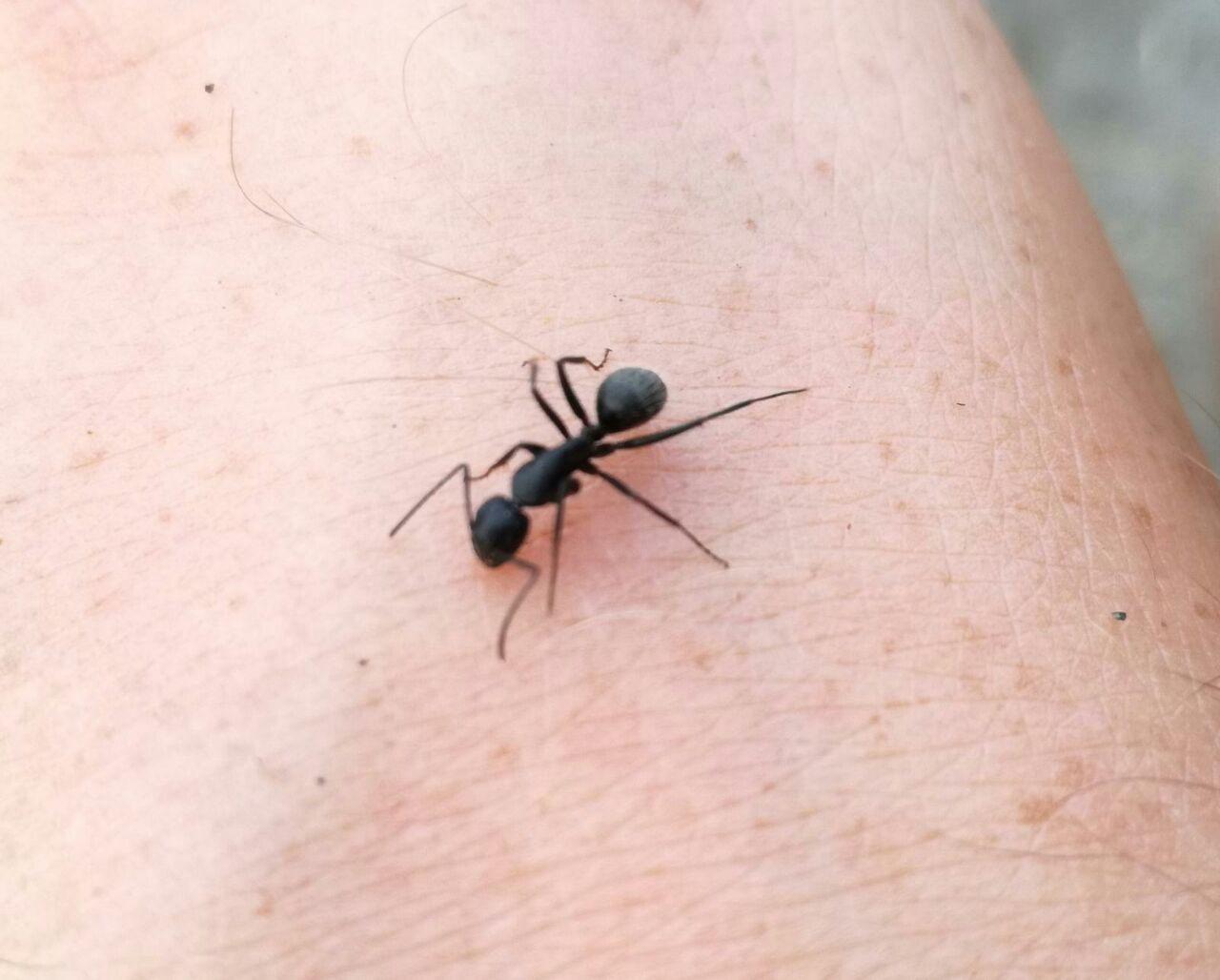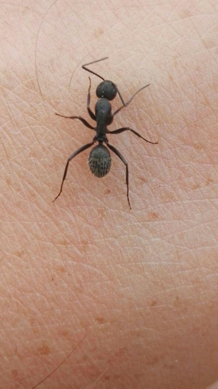 Deckt sich mit Camponotus vagus, die ich seit kurzem auch hier beobachten kann - wuchtig gebaut, glänzed schwarz mit starker Beborstung an der Gaster. Die Majore sind richtig leicht reizbar und greifen dann auch einen Gartenschlauch an - und die Hände, die ihn halten. Auf flachen Böden erreichen die Tiere außerdem ein flottes Tempo, mir scheint auch dass sie auf heißen Oberlächen wie z.B. Stege in praller Sonne, noch schneller sind.