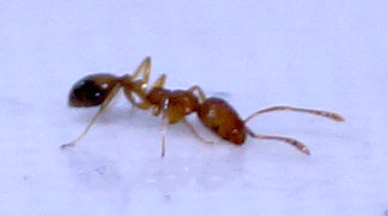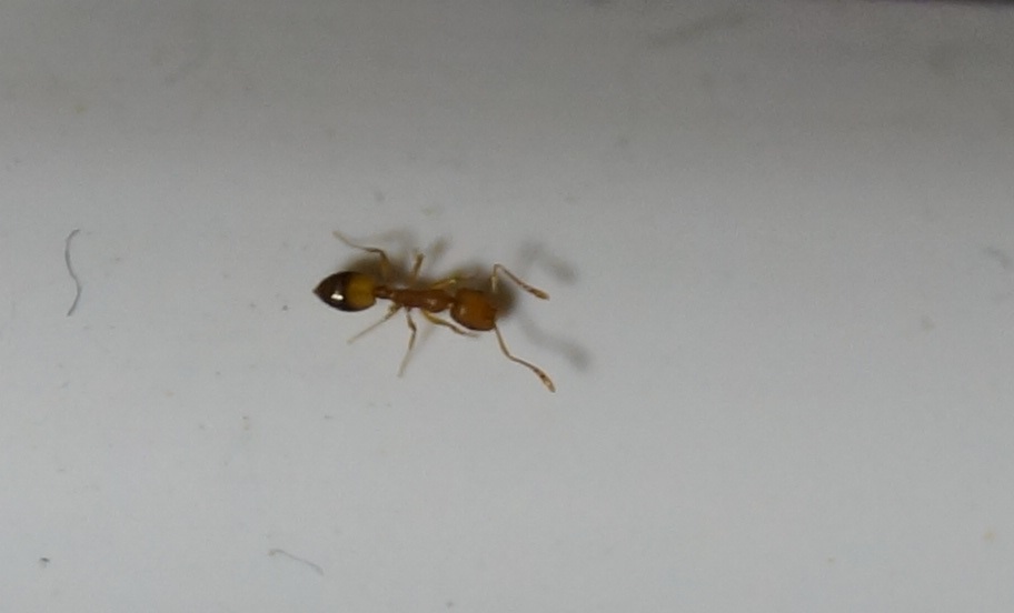 Nach den erkennbaren Merkmalen (Farbverteilung, Fehlen der Dörnchen hinten am Thorax, Form der Stielchenglieder) bin ich noch immer überzeugt, dass es sich um die Pharaoameise handelt.