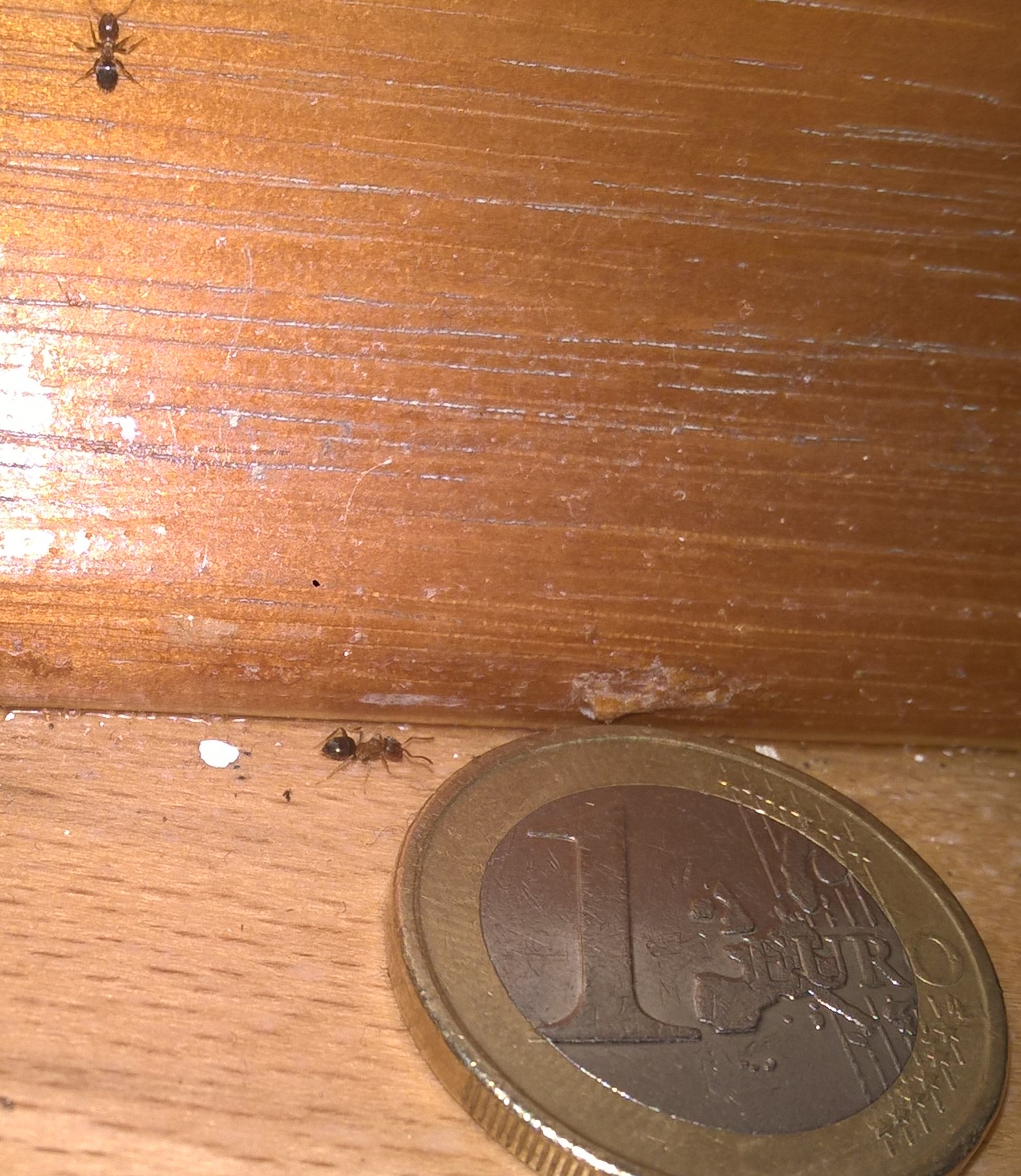An vielen Tagen ist aber keine einzige Ameise zu sehen. Meistens sind so 5 -15 Tiere unterwegs, rennen unkoordiniert durchs Zimmer und sind irgendwann wieder weg. Ein, zwei Einfallstellen konnte ich definitiv finden, im Badezimmer bspw. weiß ich nur, dass es irgendein Spalt am Fenster sein könnte.