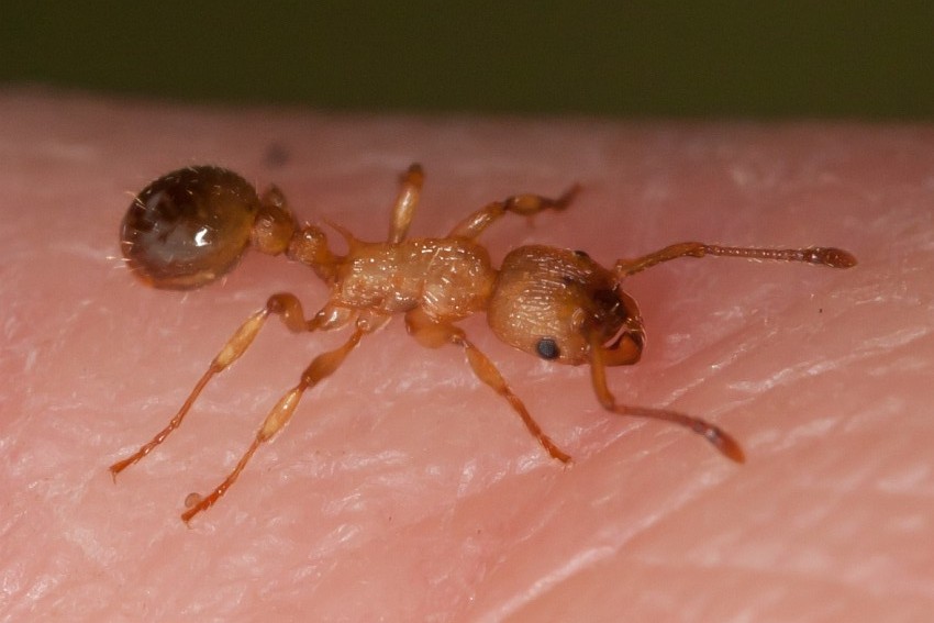 Jedenfalls Myrmica sp., nach dem Foto kann man die Art nicht feststellen: Die wichtigsten Merkmale wie Ansatzstelle der Scapi od. die Form des Petiolus (in Seitenansicht) sind nicht (deutlich) erkennbar. Nachdem auf Foto 2 der Scapus nach dem Ansatz offenbar einen Knick zeigt (viell. mit kleinem Lobus?), kann man die häufigen M. rubra u. M. ruginodis ausschließen. Der Rest - wie gesagt - Petiolus in klarer Seitenansicht u. die Ansatzstelle der Antennen am besten aus mindestens 2 Richtungen (v. vorne, v. oben z. B.) und alles als Makro!