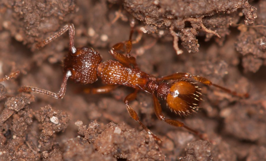hier hätte ich dann noch eine Myrmica sp. anzubieten, die natürlich nicht wirklich einen Artnamen erwartet. Aber im Gegensatz zu meinen wenigen anderen Myrmica cf. rubra-Fotos finde ich die Propodealdornen dieses Exemplars ziemlich lang und der Postpetiolus ist relativ furchig...?