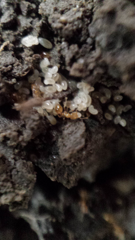 danke für die Antwort! Der Garten befindet sich im östl. Burgenland, Österreich. Höhenlage 218 m ü. Adria, Boden ist stark lehmhaltig. Die Tiere scheinen enorm große Brutkammern zu haben (im Vergleich zur Körpergröße). Augenscheinlich nisten sie zwischen Lasius cf. niger/flavus und wurden auch im wilden Gewusel nach dem Aufgraben nicht angegriffen. Vom Verhalten her waren die Tiere beinahe lethargisch, das könnte aber natürlich andere Ursachen haben bzw. ganz normal sein für Solenopsis fugax :)