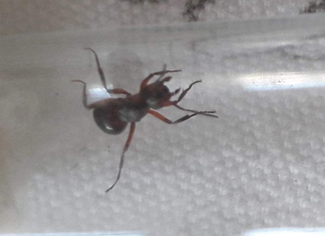 Das erste Foto sagt mir erstmal nicht viel. Auf dem zweiten Foto sieht man, dass es sich mMn definitiv NICHT um eine Rossameise handelt, sondern um Formica sp. Um diese Jahreszeit kann das nur eine geschützte Formica s. str. sein. In Frage kommen da F. rufa, F. polyctena, F. pratensis und einige andere. Eier wird sie nicht legen, da diese Arten sozialparasitisch gründen. Diese Arten sind streng geschützt. Bitte wieder freilassen und evtl. etwas Honigwasser anbieten. Ich mache dir keinen Vorwurf, es wäre aber hilfreich gewesen direkt nach dem Fangen zu fragen ;).