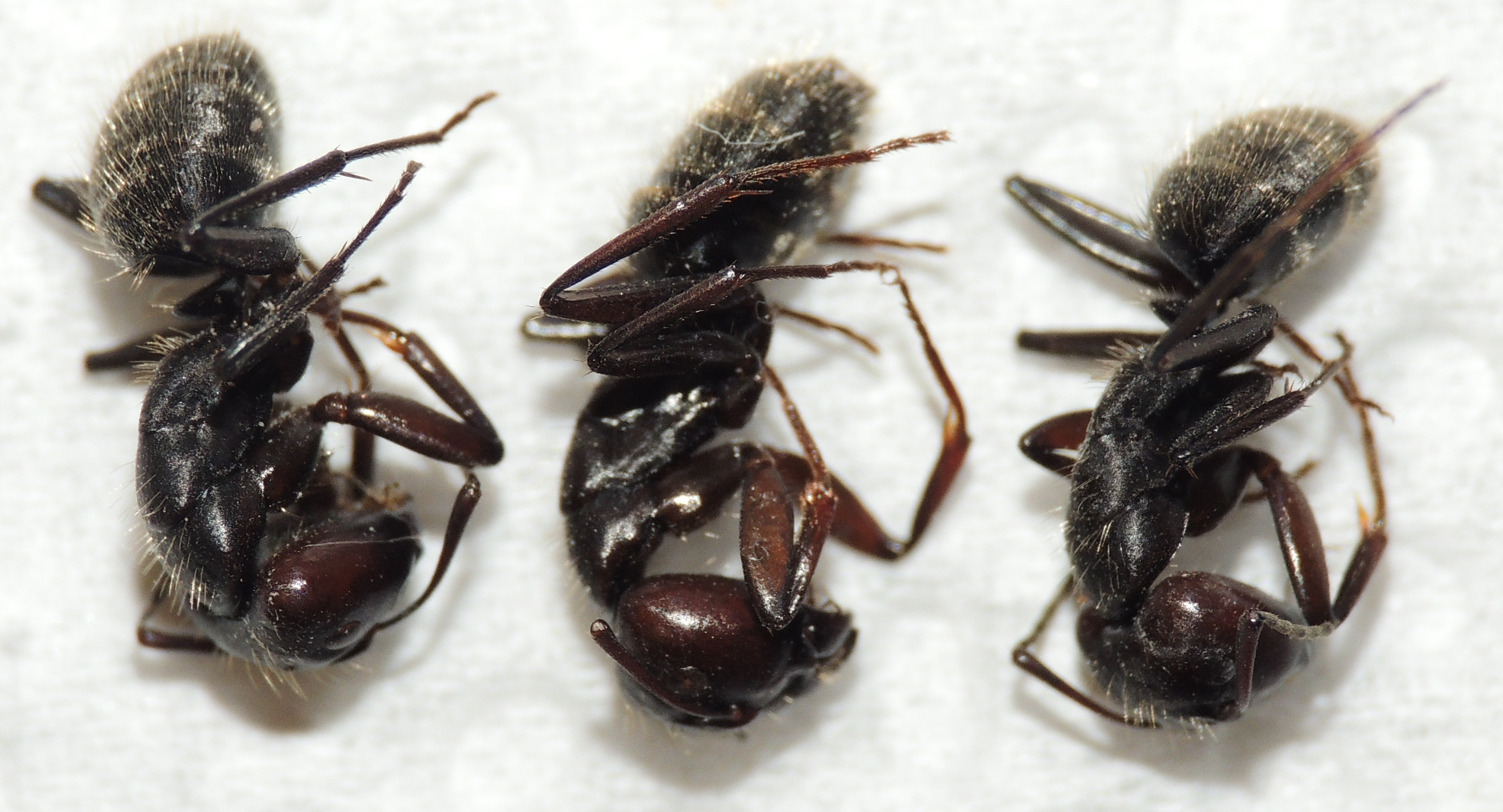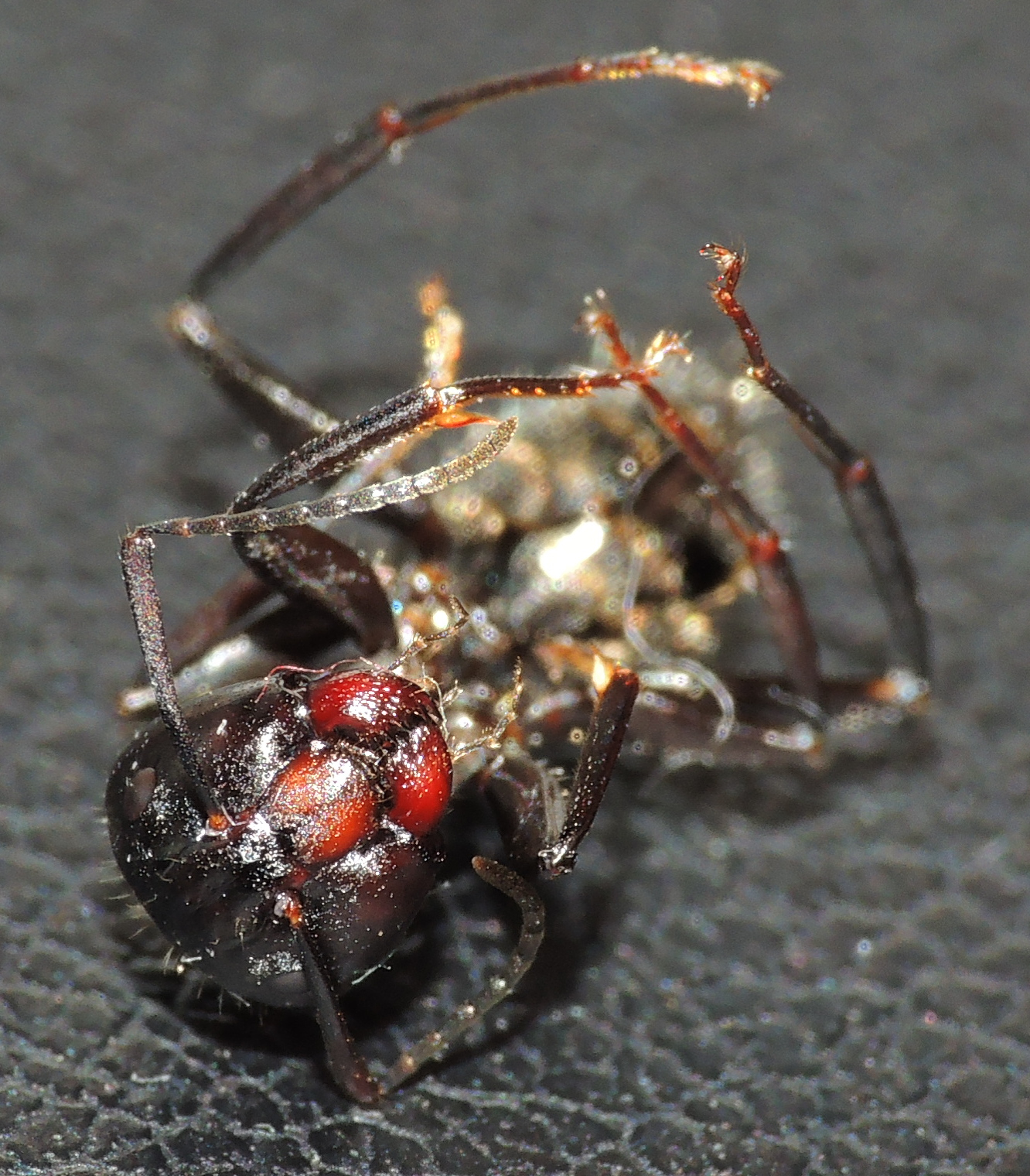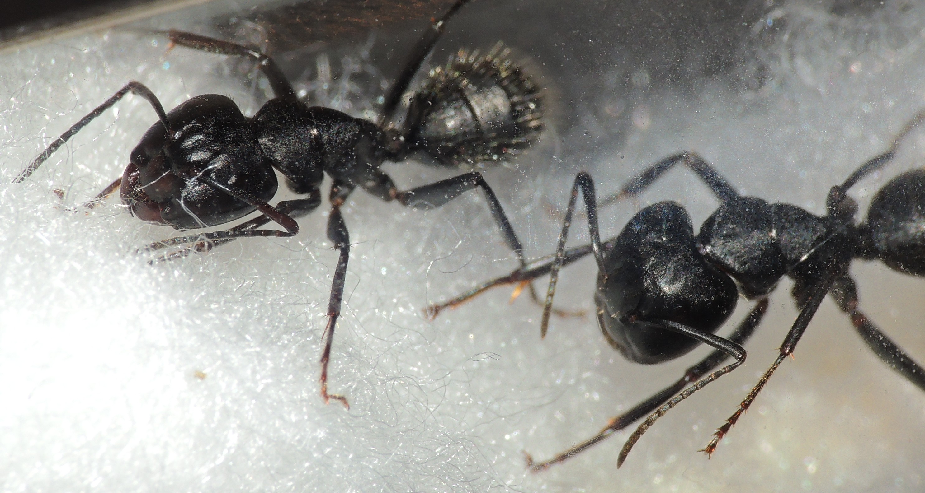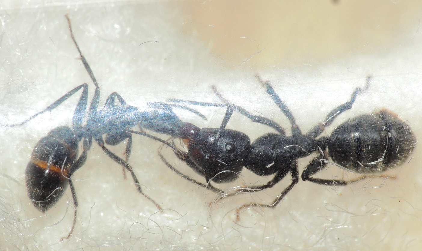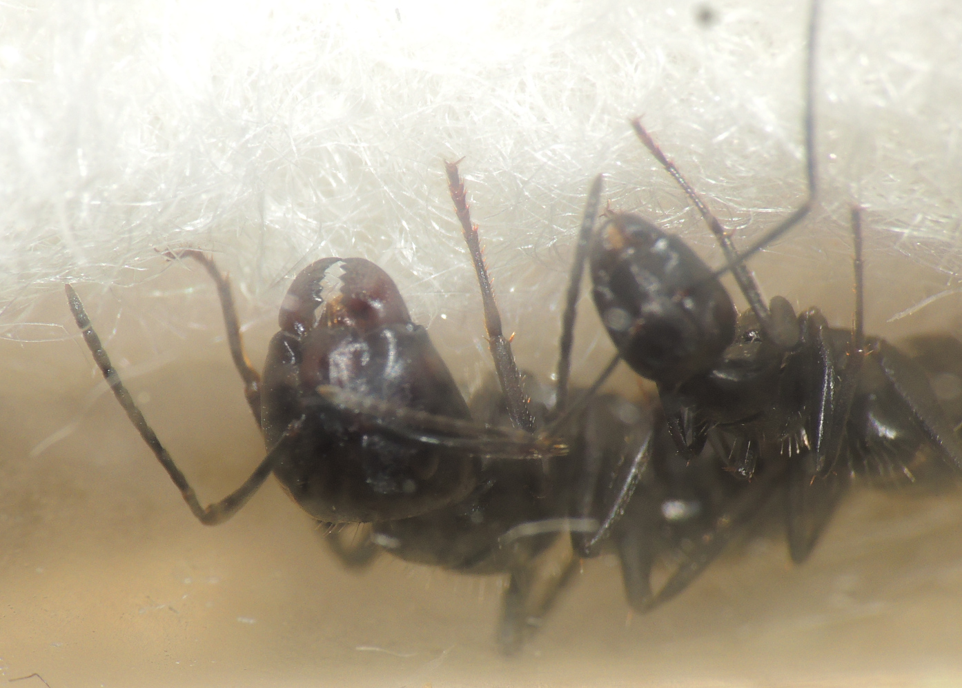 Nach dem spannenden Fund von Hoffer 2017, hat Herbert Wagner den Fund 2019 publiziert ("Wiener Ameisenbeobachtungen", pdf: https://www.zobodat.at/pdf/BEF_20_0143-0159.pdf). Seitdem hatte sich nicht mehr allzu viel getan, bis letztes Jahr ein weiterer Fund auf iNaturalist gepostet wurde: https://www.inaturalist.org/observations/96123348 - Im Anschluss stand ich in kurzem Austausch mit Herbert Wagner. Ihm waren zu diesem Zeitpunkt ebenfalls nur diese beiden Funde bekannt. Wagner hält eine physiologische Störung als Folge eines endoparasitischen Befalls am wahrscheinlichsten, wobei seine Untersuchung 2019 zumindest keine Nematoden nachweisen konnte. Wie vielfältig mögliche Parasiten aber sein können zeigt Laciny (2021): "Among the shapeshifters: parasite-induced morphologies in ants (Hymenoptera, Formicidae) and their relevance within the EcoEvoDevo framework" (open-access: https://evodevojournal.biomedcentral.co ... 21-00173-2, pdf: https://evodevojournal.biomedcentral.co ... 0173-2.pdf). Nun bin ich vor einer Woche auf iNAt sogar noch auf einen dritten Fund gestoßen, welcher dort allerdings bereits 2020 hochgeladen wurde: https://www.inaturalist.org/observations/45162205