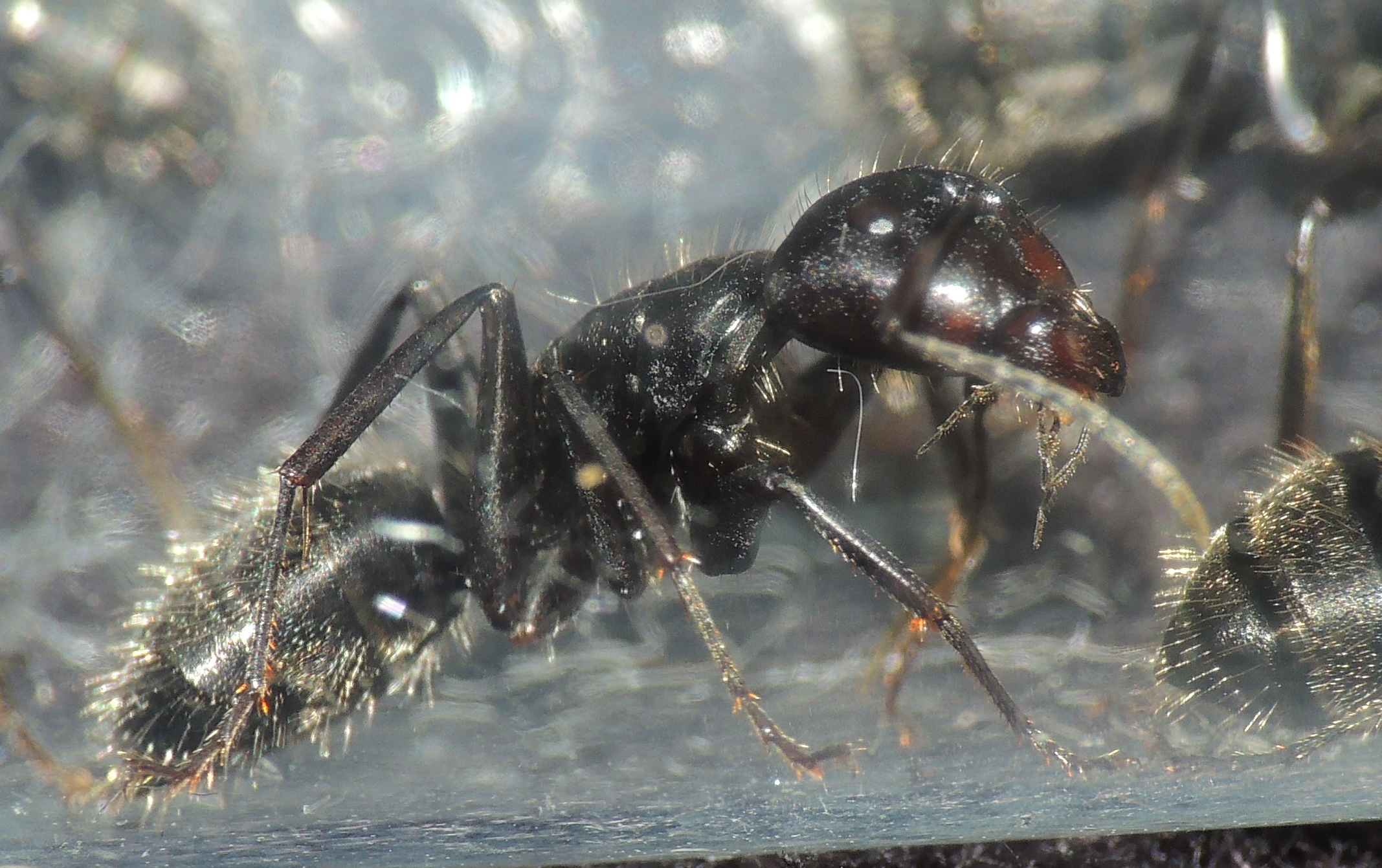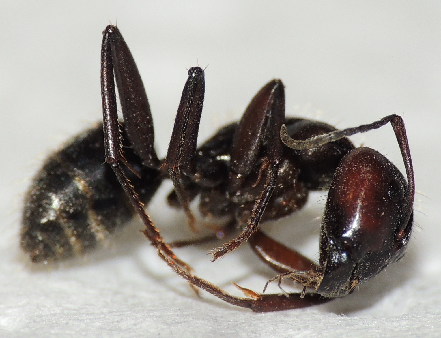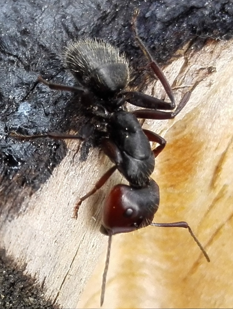 Von Habitus und Gasterbehaarung her würd ich auch meinen, es handelt sich um Camponotus vagus. Aber eine solche (sehr schöne, wie ich finde) Farbvariante habe ich noch nie gesehen, unsere C. vagus sind immer einheitlich schwarz. Die anderene grossen heimischen Camponotus haben ebenfalls schwarze Köpfe. Überhaupt kenne ich ausser Camponotus truncatus keine einheimische Camponotus mit rotanteil am Kopf (ausser Camponotus lateralis, aber die kommen bei uns nur südlich, im Tessin, vor).