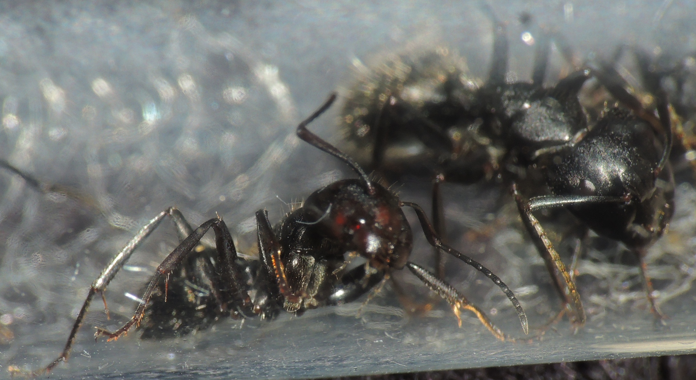 Habe bei mir in Wien eine interessante Beobachtung gemacht. Vor kurzem konnte ich ein kleines Areal ausfindig machen, auf dem 3-4 Kolonien von Camponotus vagus leben, soweit so uninteressant,... ABER bei einem Nest ist mir plötzlich etwas aufgefallen... die Major- Arbeiterinnen haben einen (dunkel-) roten Kopf?! Ist sowas bekannt, oder handelt es sich hier um etwas Außergewöhnliches (Hybridisierung,...?)?