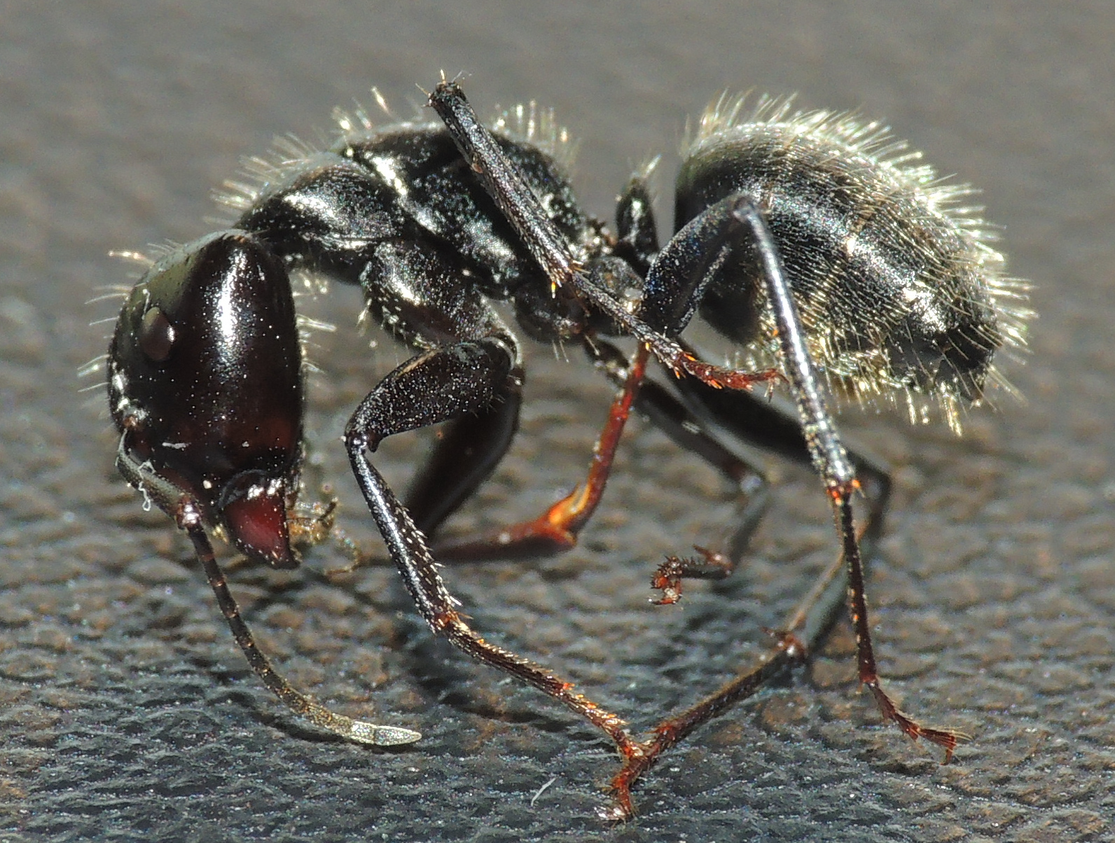 Auch die Farbe der Beine, der von dir fotografierten Tiere, scheint ungewöhlich rot. Tritt die Färbung bei allen Tieren der Kolonie auf? Oder nur bei einzelnen Exemplaren oder bestimmten Unterkasten? Und wie steht es um die Grösse der Arbeiterinnen, unterscheiden sie sich da von Exemplaren anderer Kolonien ihrer Art?