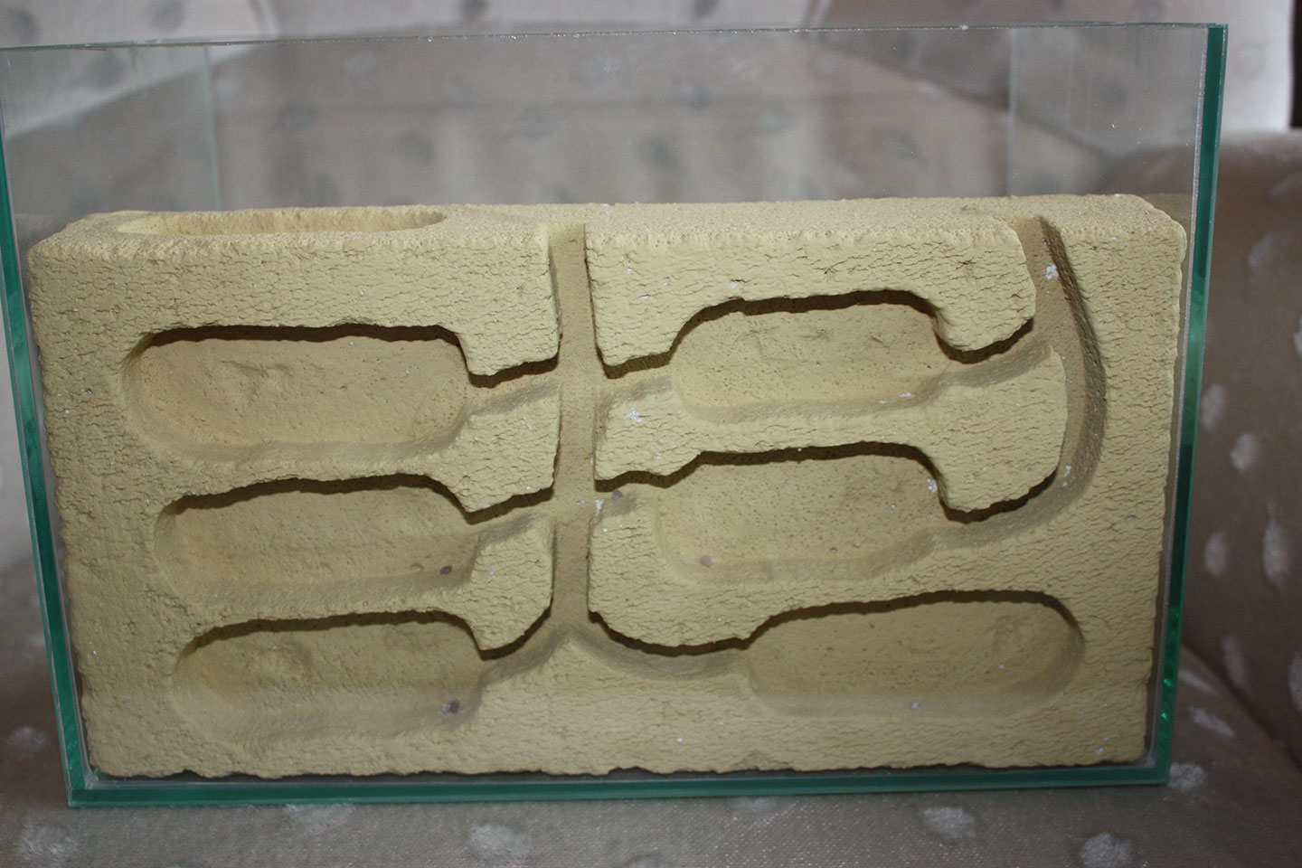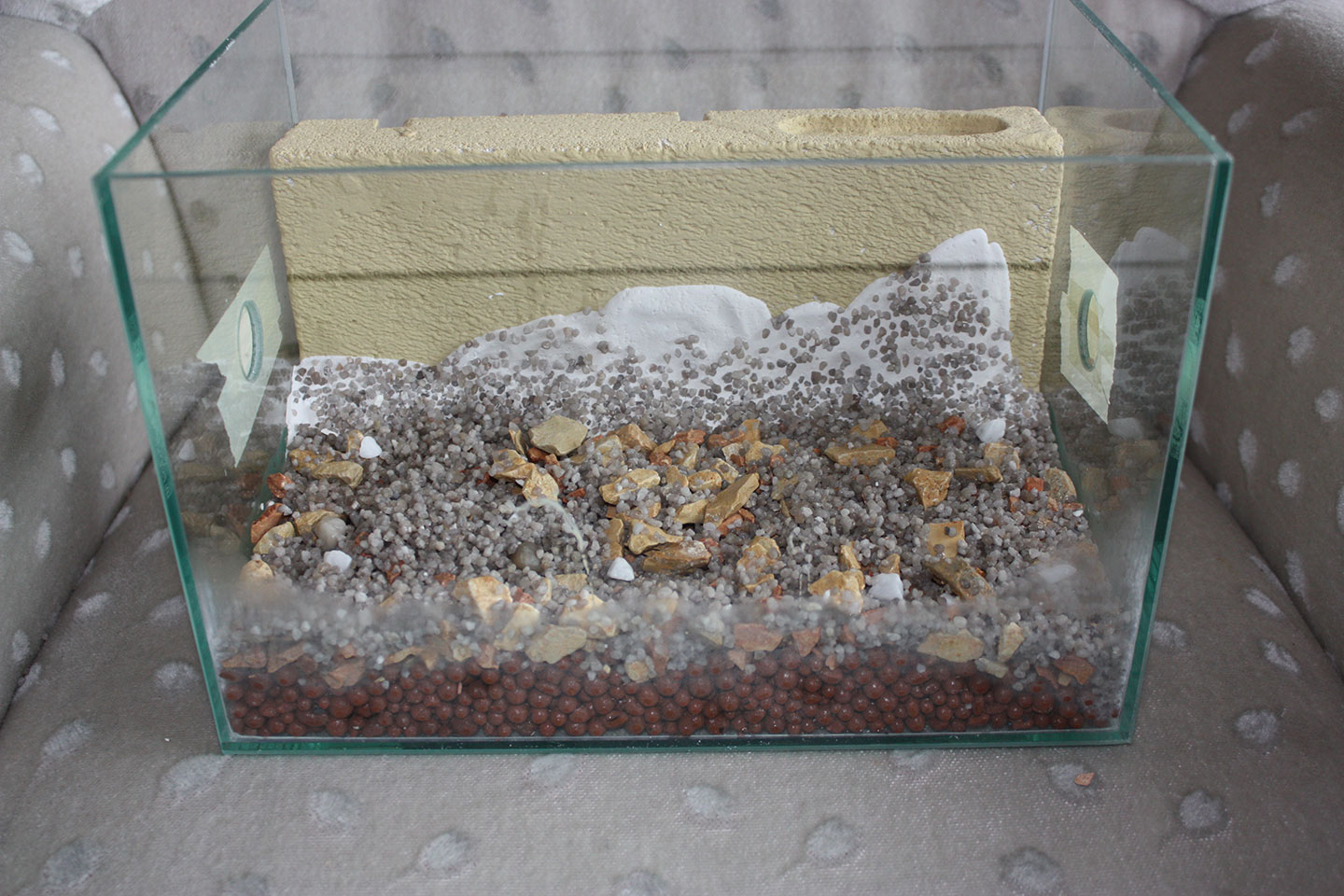 Als erstes setzte ich das fertige Ytongnest in das Glasbecken.