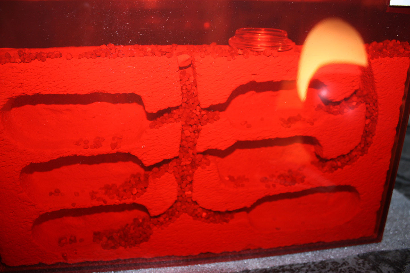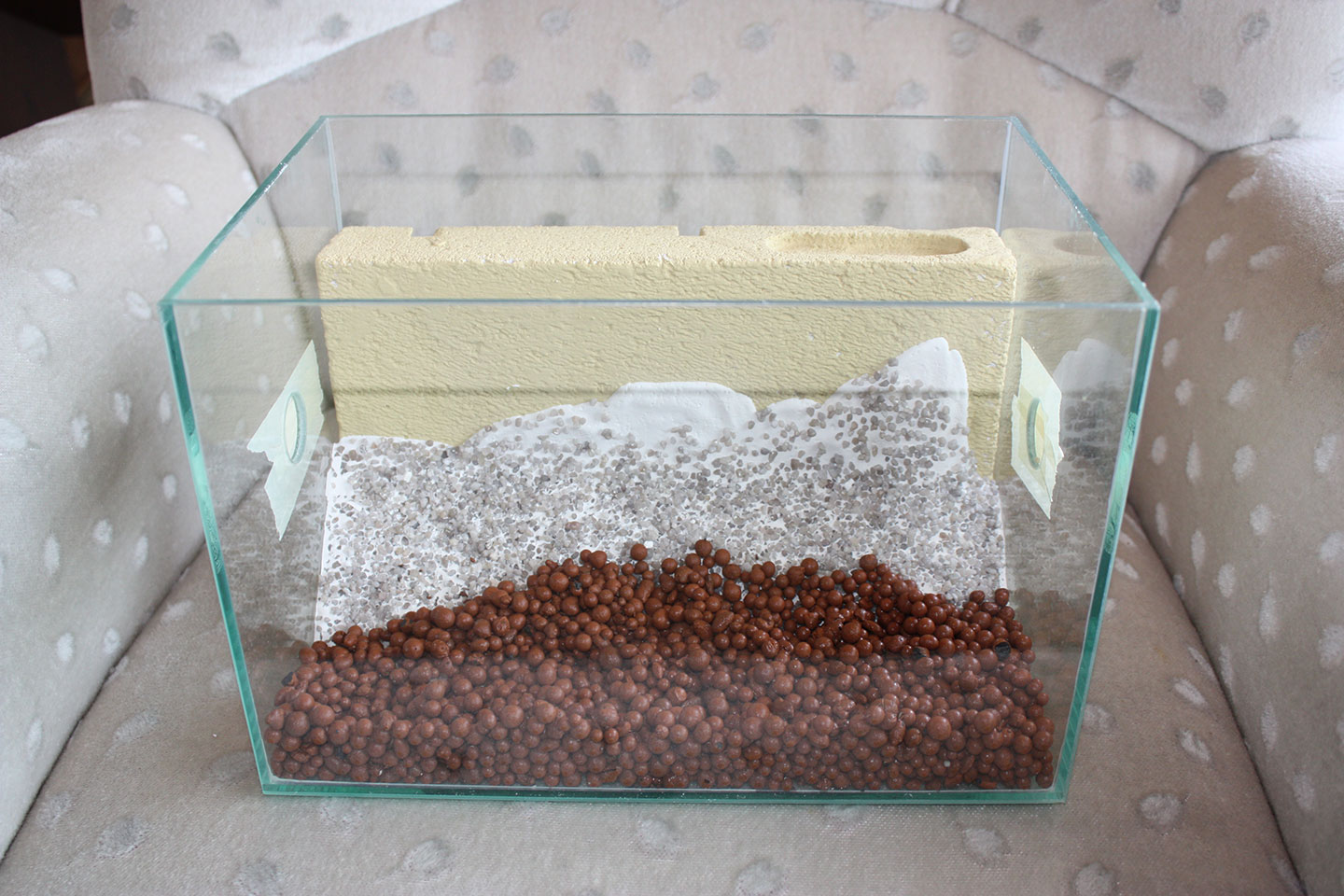 Der feine Aquariumkies wird auch verwendet um die einzelnen Kammern zu schließen, nur 1 Kammer bleibt offen.