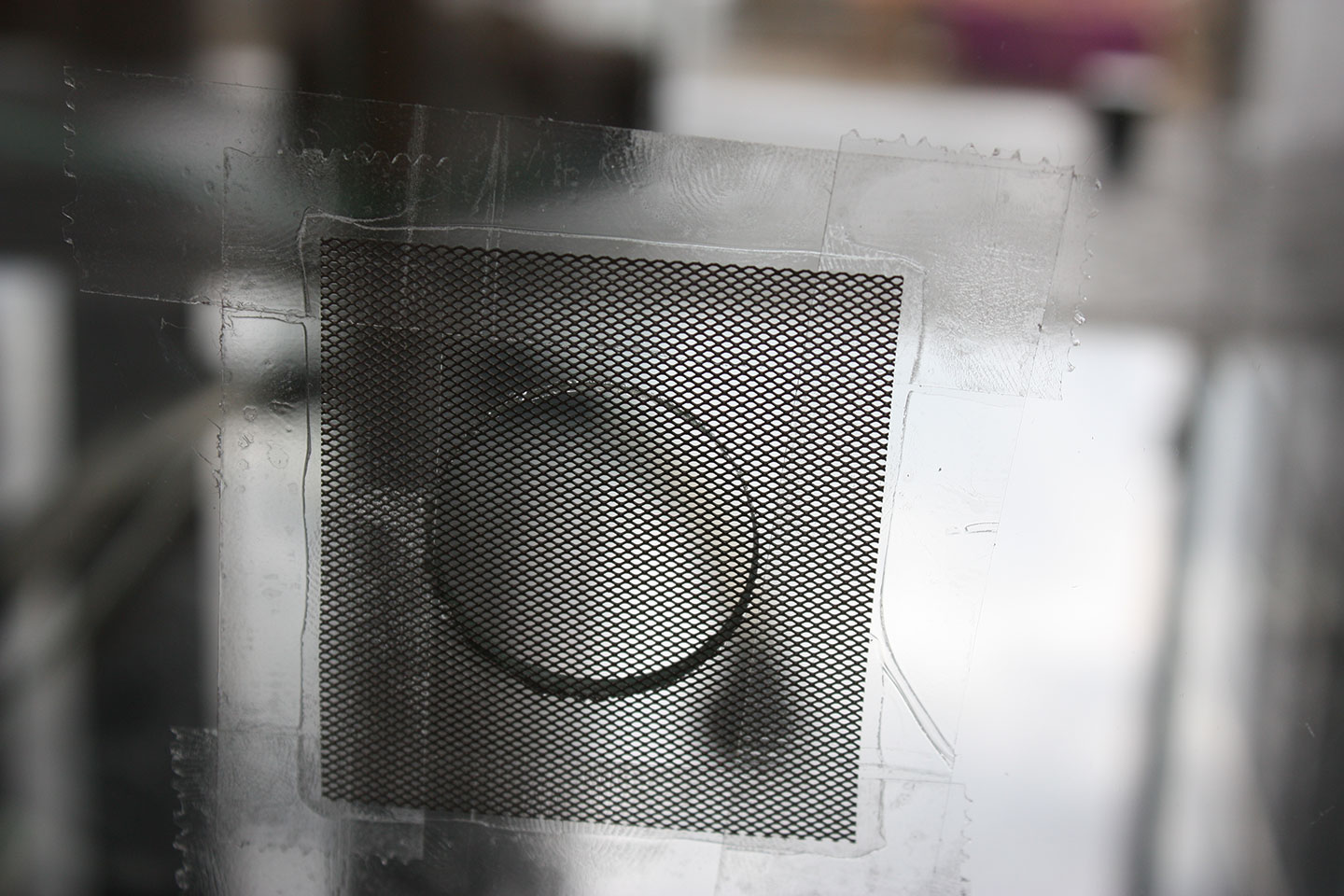Das Schutzgitter Fiberglas wird an das Außenloch mit Silikon angeklebt.
