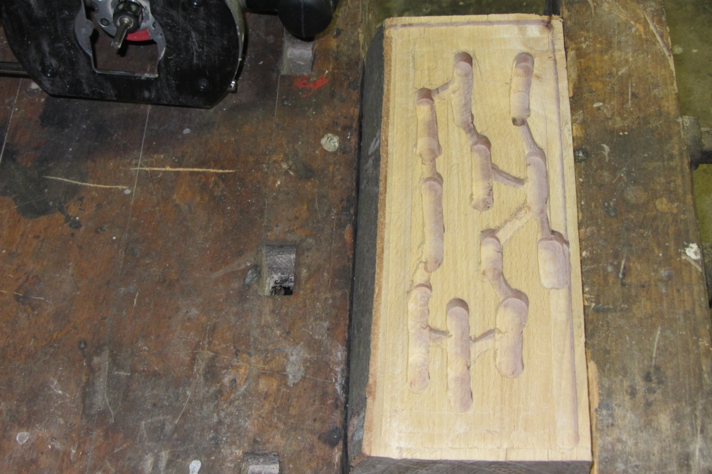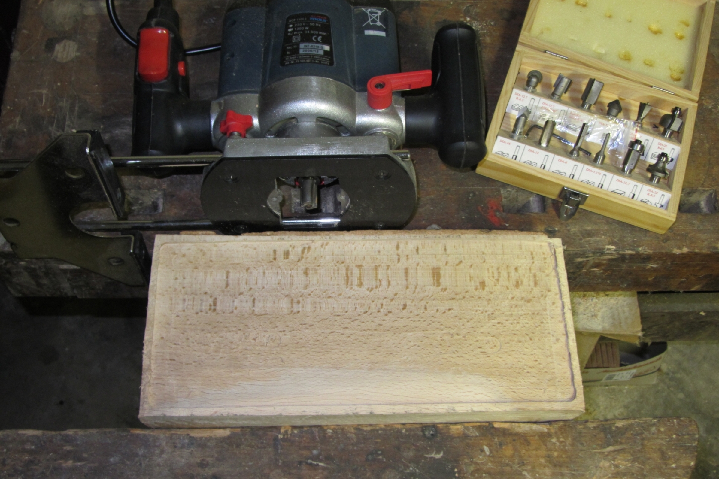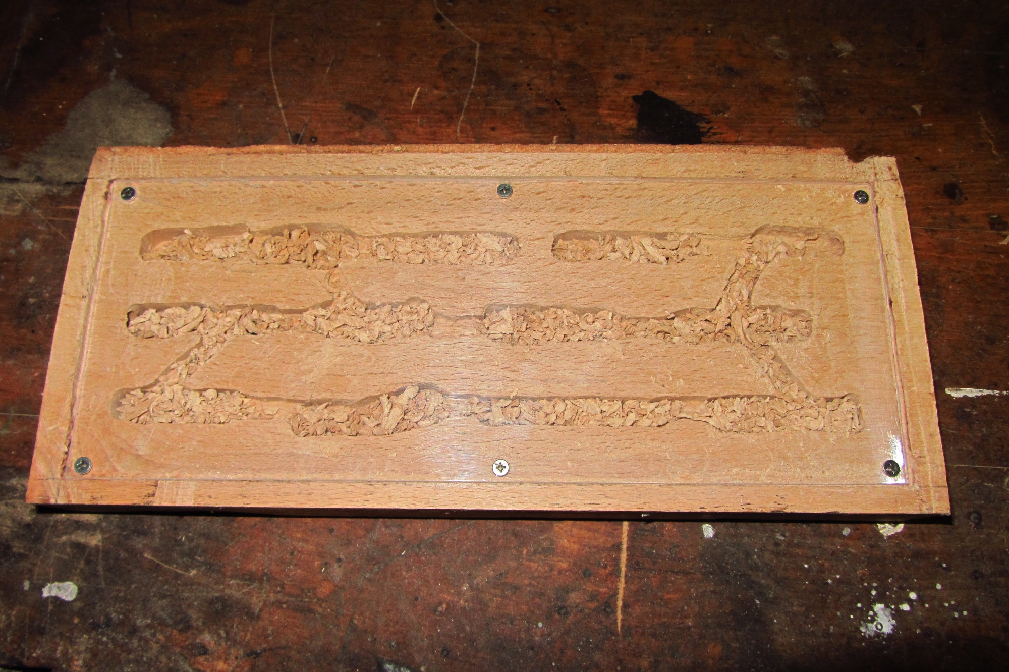 Ich habe Buchenholz verwendet, da das gerade gut getrocknet ist, sich somit hoffentlich nur noch wenig verziehen wird. Sehen wir, ob sich meine Hoffnung bestätigt. Später, wenn das Fichtenholz soweit ist, probiere ich das damit auch noch. Wird wohl etwas mehr spreißeln. Egal, zur Sache: