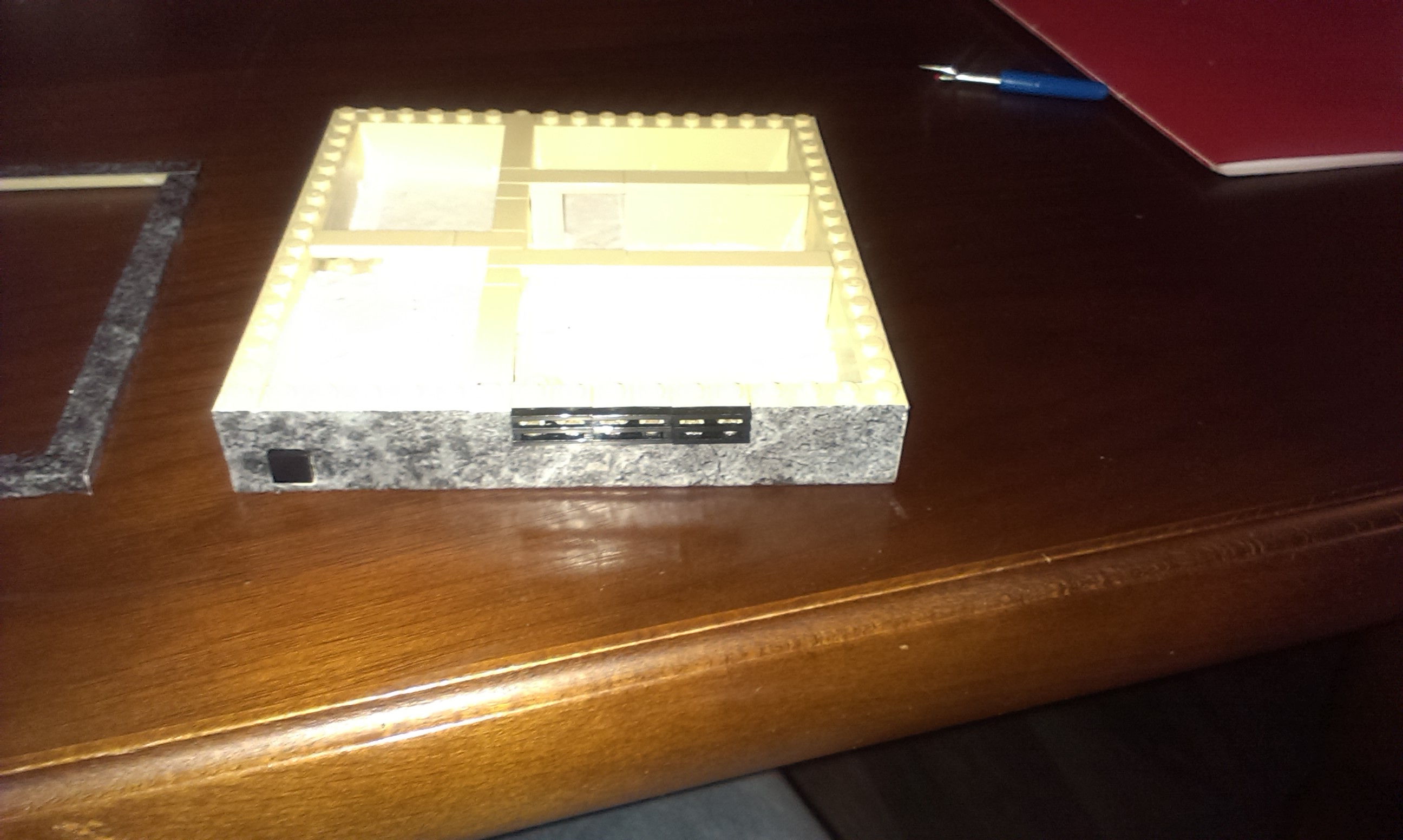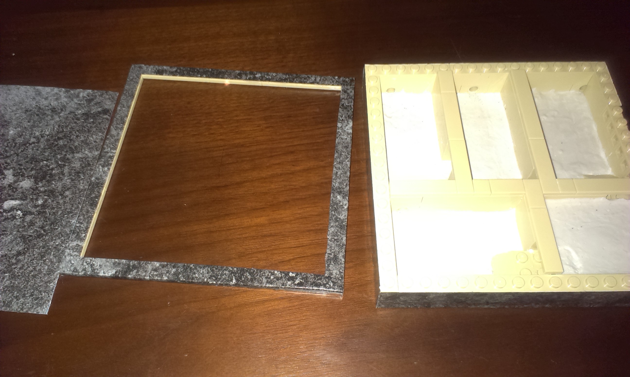Auf das ganze Ding kommen natürlich noch zwei Plastik Scheiben die ich aufklebe ! Dadurch das die obere Reihe aus Flachen Steinen besteht kann ich diesen auch jederzeit abnehmen