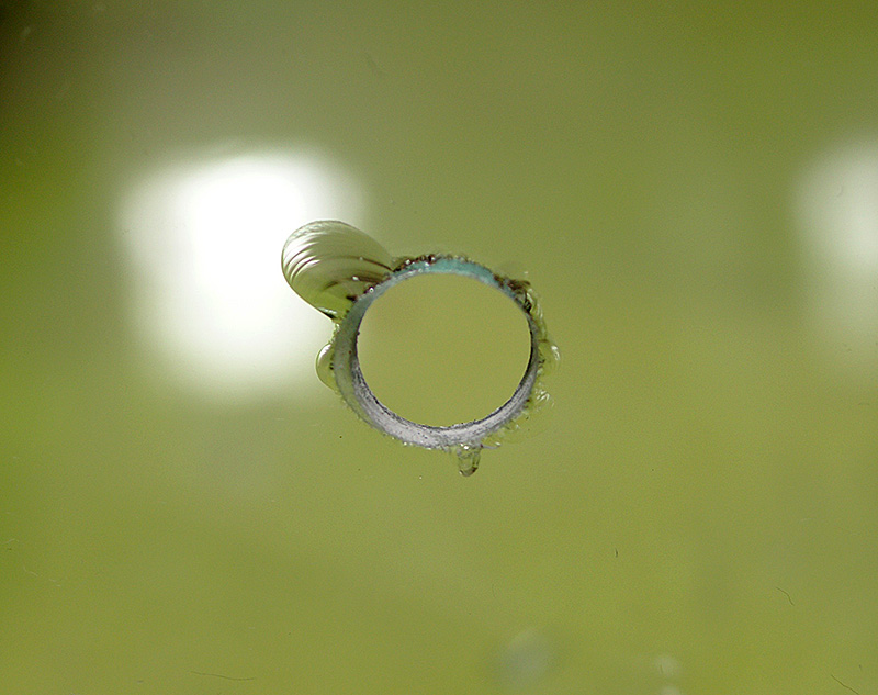 ich bin gerade dabei das Formicarium meiner Camponotus ligniperdus für die neue Saison vorzubereiten. Da ich wegen der Koloniegröße nun ein Außennest nutzen will, musste ich ein Loch für den Schlauchanschluss in das Becken bohren. Ein Freund hat mir sein Glasbohrer Set "Wolfcraft 8771000" gegeben, das zwar laut Kundenbewertungen im Internet nicht so gut sein soll aber eigentlich doch sehr gut funktioniert hat. Das praktische bei dem Set ist die Führung, in die man auch einen beiliegenden Schwamm zur Kühlung des Glases und Bohrers einbringen kann. Nachdem die Führung samt nassen Schwamm mit den Saugnäpfen am Becken angebracht war, hab ich mit meiner Bohrmaschine (OHNE Schlag!!) auf niedrigster Stufe ca. 10 Minuten mit kurzen Pausen dazwischen gebohrt. Leider hatte ich wohl am Ende noch einen Tick zu viel Druck drauf, sodass noch ein Stück der Oberfläche mit herausgebrochen ist. Ist aber nur ein kosmetisches Problem. Danach habe ich die Glaskante noch mit Schleifpapier etwas entgratet und den Schlauchanschluss mit etwas Gewalt reingedreht. Hält wunderbar, kann das Set nur weiterempfehlen! Wie viele Bohrungen ein Bohrkopf durchhält, weiß ich leider nicht. Das müsste jetzt die zweite oder dritte Benutzung gewesen sein.