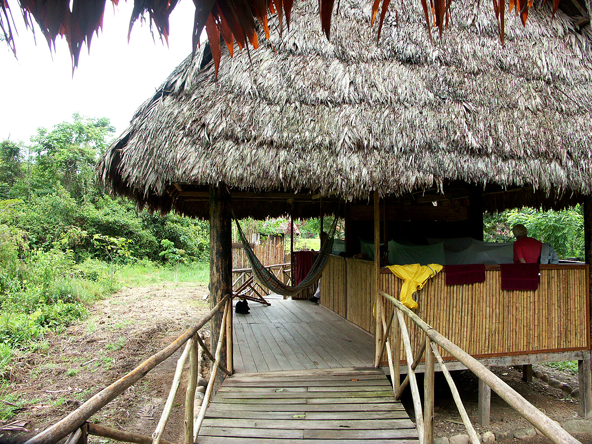 Nicht das "Dschungelcamp", sondern eine Lodge an einem Nebenfluss des Amazonas, im Regenwald. Die Person steht in einem der Zimmer: ohne Fenster, ohne Tür, ohne Schrank, nur zwei Betten, und nach fünf Minuten wimmelte der Rucksack von "kleinen schwarzen Ameisen"! - Schön war's trotzdem! :D