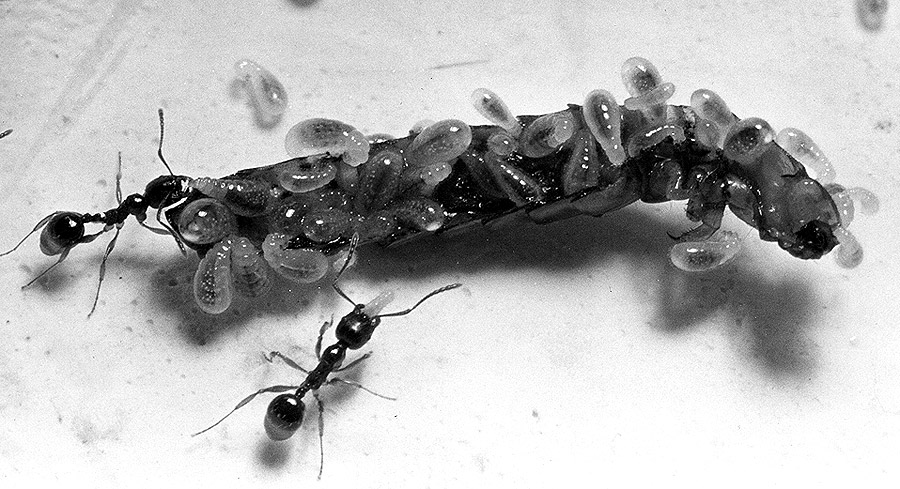 Bei Myrmecina ermöglichen die kleinen, schmalen Köpfe den Larven das Ausfressen von teilweise geöffneten Milben der Fam. Oribatidae (Hornmilben – Ref.), der Beute, auf die diese Gattung spezialisiert ist.