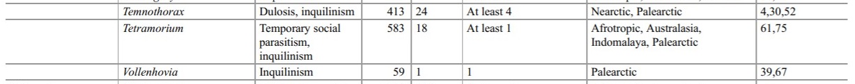 Baroni Urbani, C., 1967, “Le distribuzioni geografiche discontinue dei Formicidi mirmecobiotici.” Archivio Botanico e Biogeografico Italiano, vol. 43 [=(4)12]: p. 355-365.