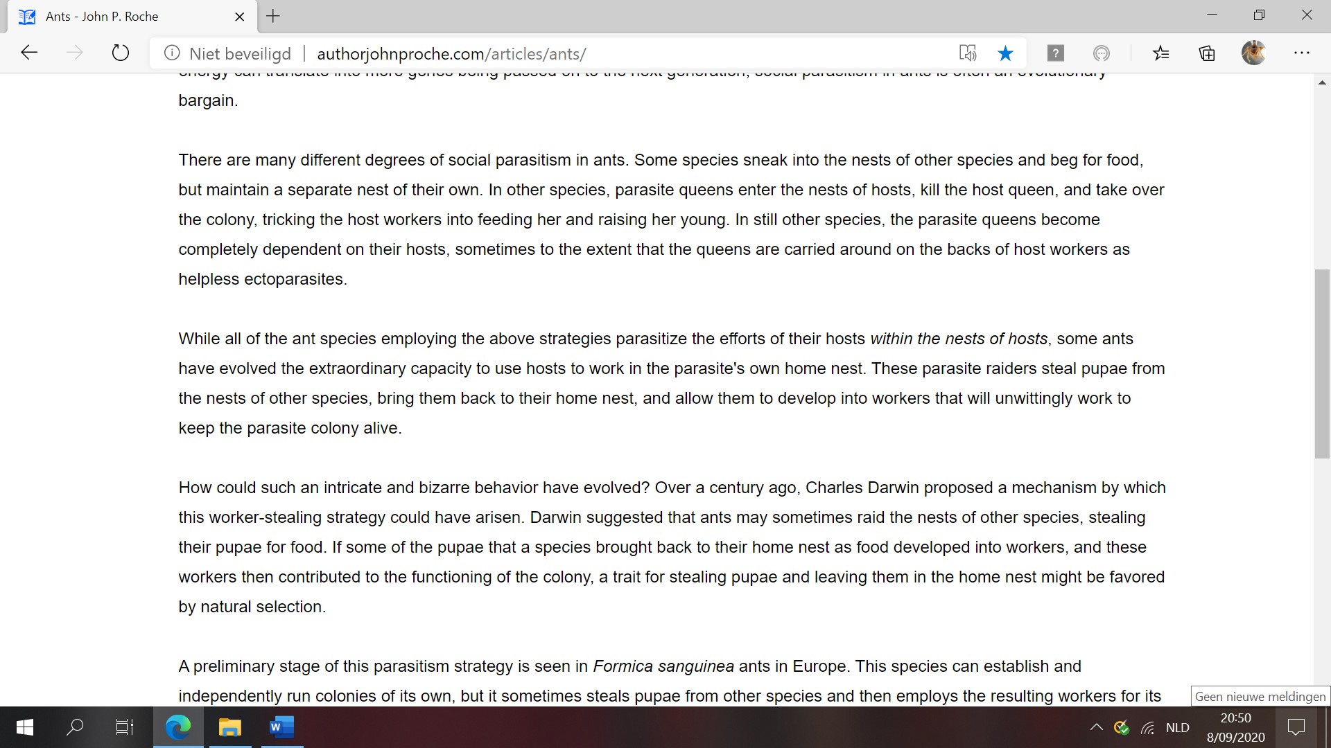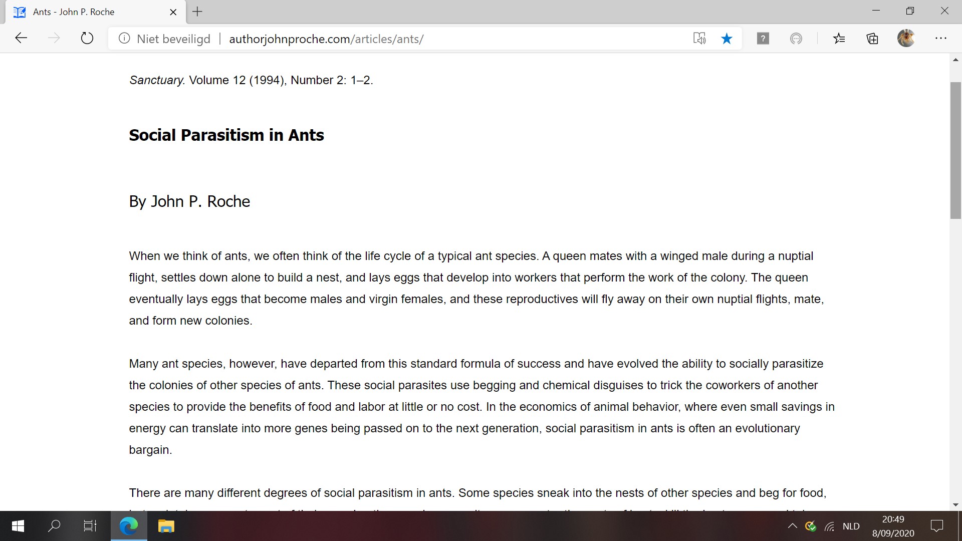 Buschinger, A., 1970, “Neue Vorstellungen zur Evolution des Sozialparasitismus und der Dulosis bei Ameisen (Hym., Formicidae).” Biologisches Zentralblatt, vol. 88, no. 3, p. 273-299.