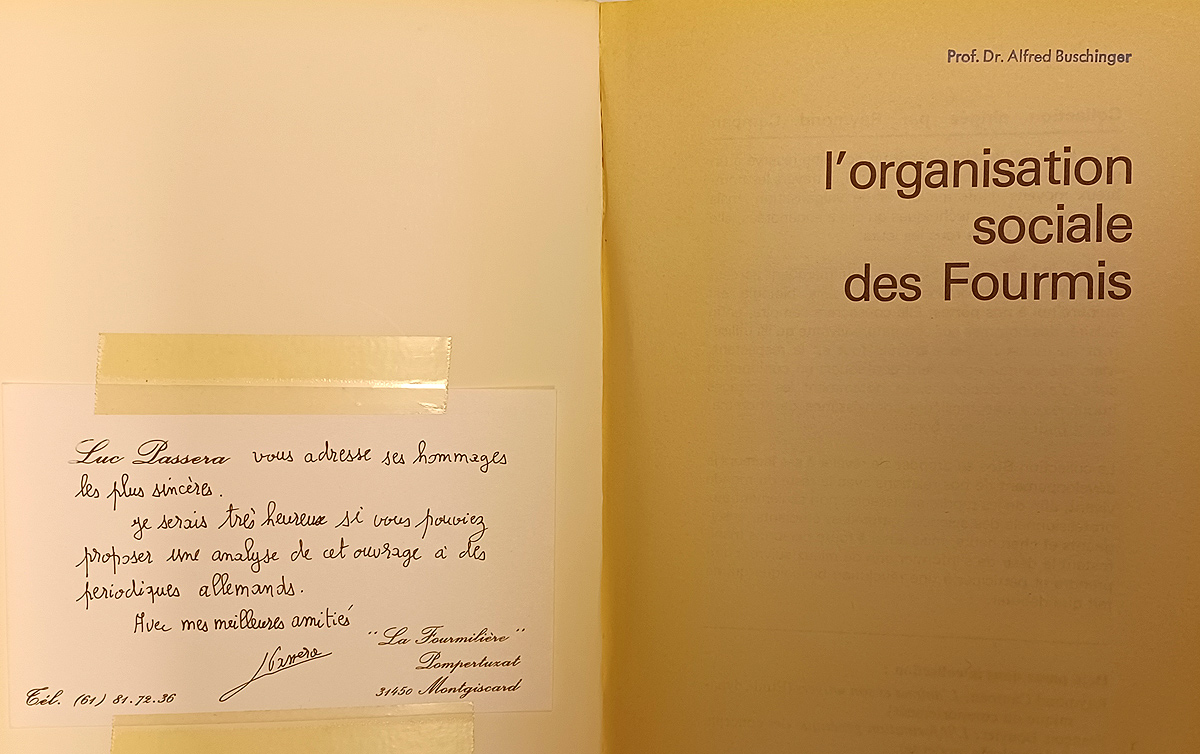 Buchbesprechung: Buschinger, A. (1985): Passera, L. (1984): L’organisation sociale des Fourmis. Collection “Bios”, Ed. Privat, Toulouse, 360 pp, 95 Abb., Z. Tierpsychol. 68, 346-352.