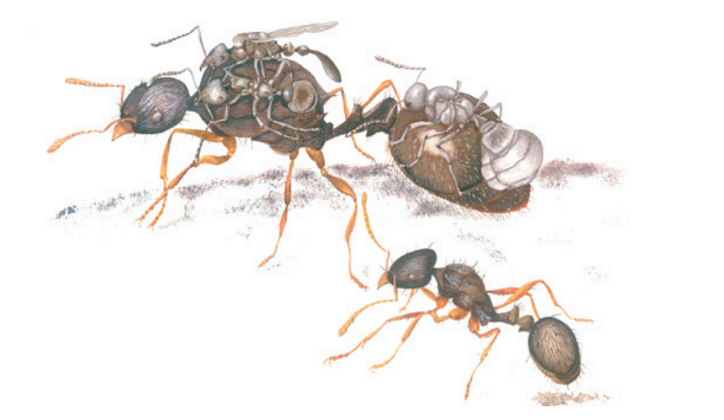 Wilson, E, O., 1984, “Tropical social parasites in the ant genus Pheidole, with an analysis of the anatomical parasitic syndrome (Hymenoptera: Formicidae).” Insectes Sociaux, vol. 31, no. 3, p. 316-334.
