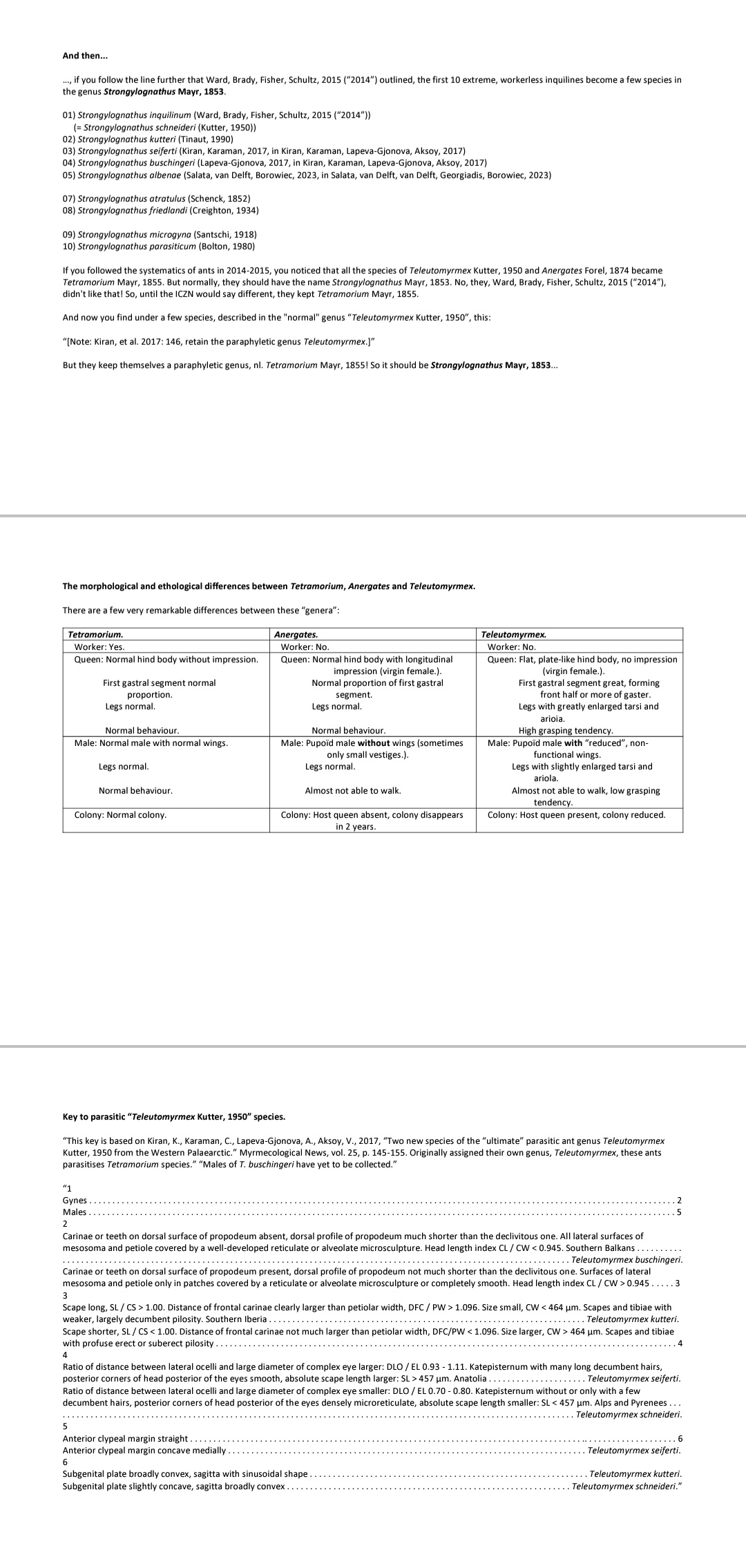It is a shame that Ward et al. didn't get it through about the name Tetramorium/Strongylognathus and that there still exsist a T. kutteri Tinaut that did not yet change it's name (Not my fault!!!).