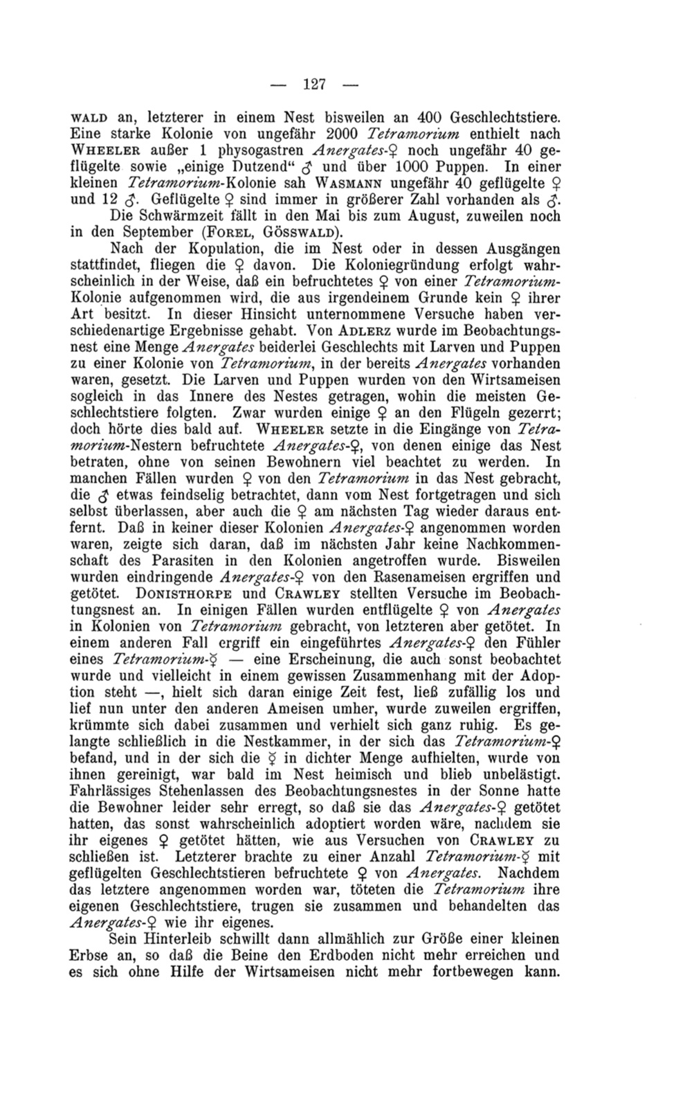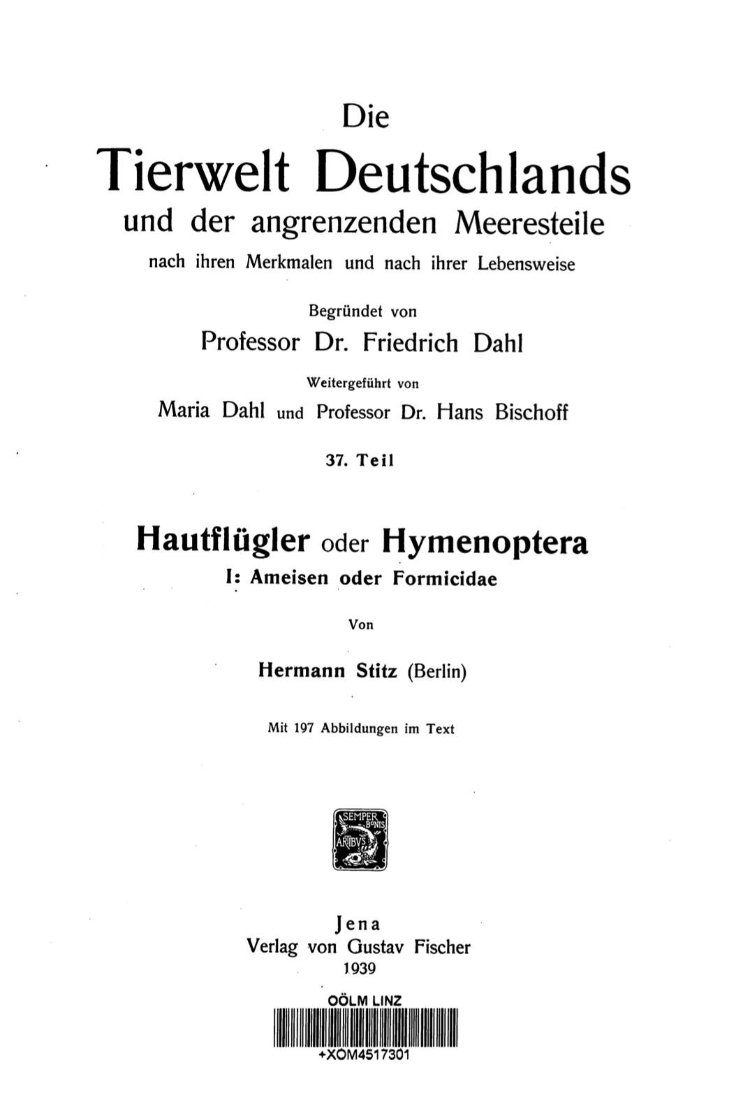 Adlerz, G. A., 1913, “Myrornas liv.” or “[The Life of Ants.]” Stockholm, Ljus, 243 pp.