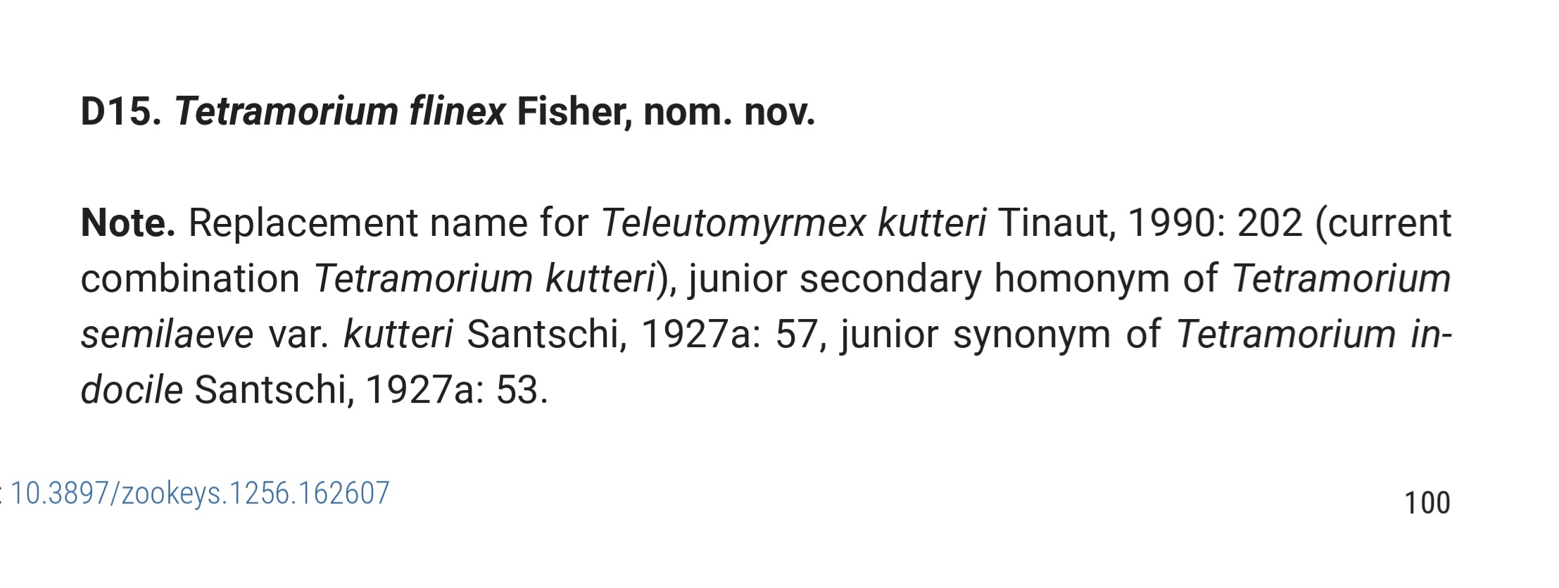 Neue Namen für teils altbekannte Ameisenarten: Replacement names for junior homonyms in ants (Hymenoptera, Formicidae). Brian L. Fisher, 2025.