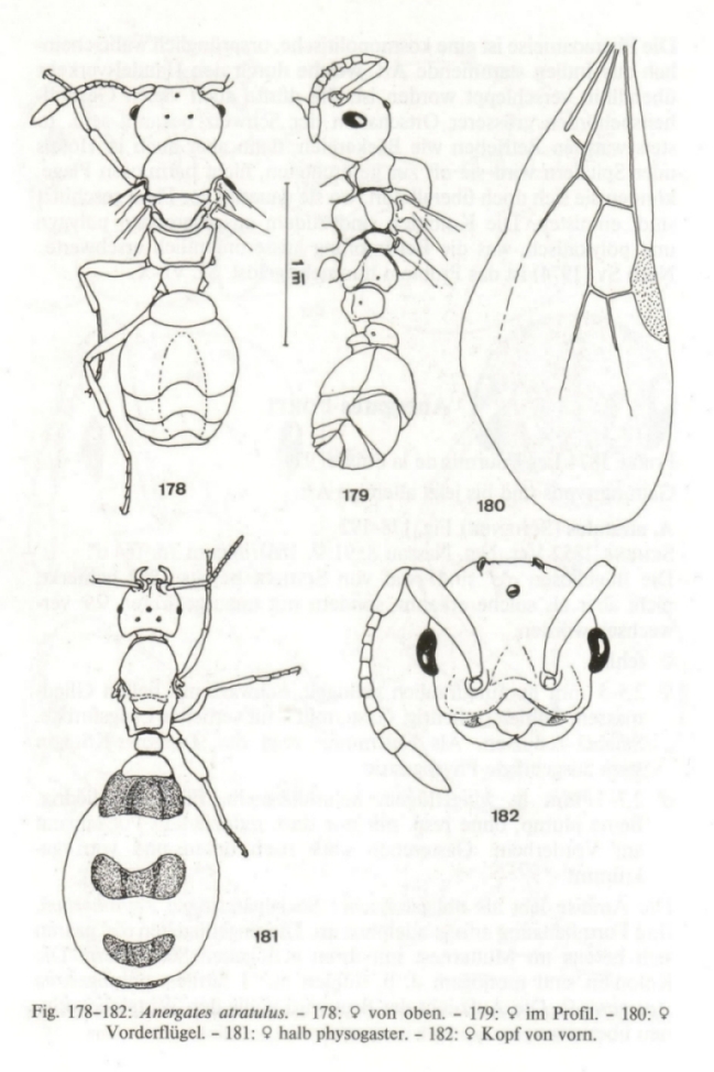 Meyer, G. F., 1955, “Untersuchungen an einer parasitischen Ameise (Anergates atratulus Schenck).” Insectes Sociaux, vol. 2, no. 2, p. 163-171.